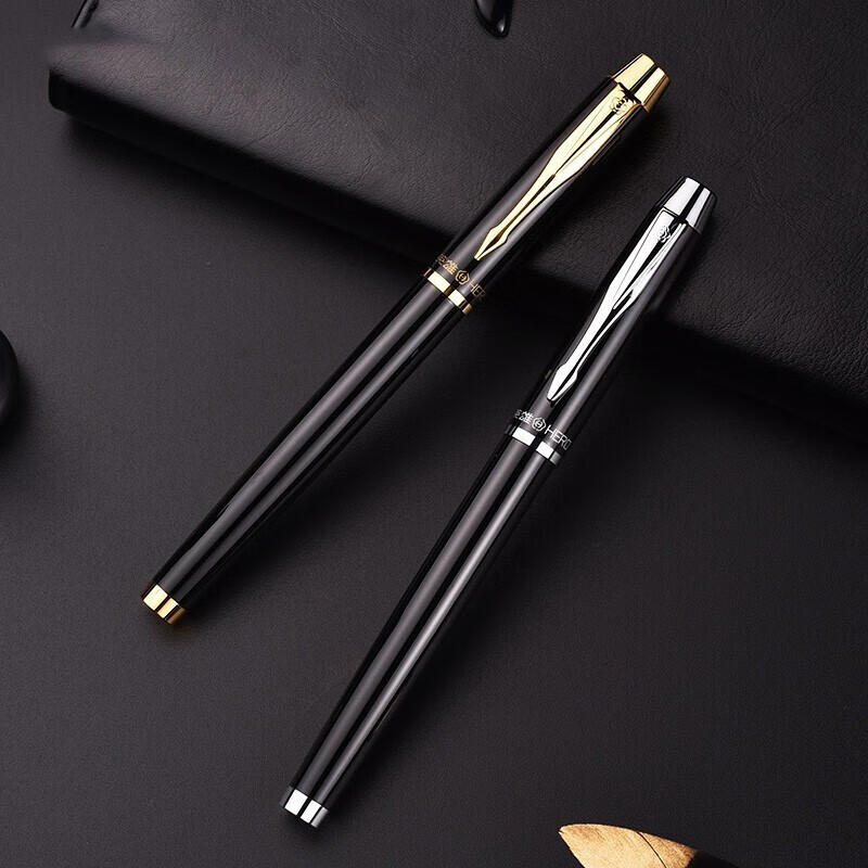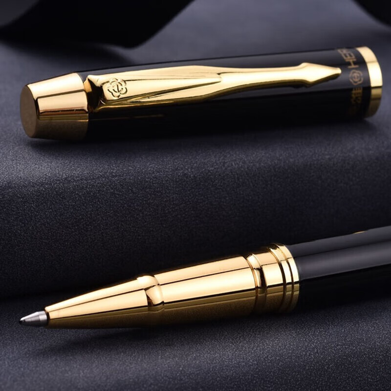 英雄(HERO)宝珠笔 商务高档金属签字笔男女士签名笔 免费刻字 7006丽雅黑金夹(礼盒装)加3支笔芯 7006/盒