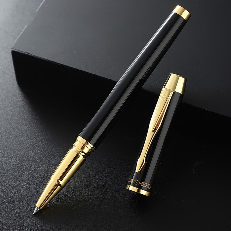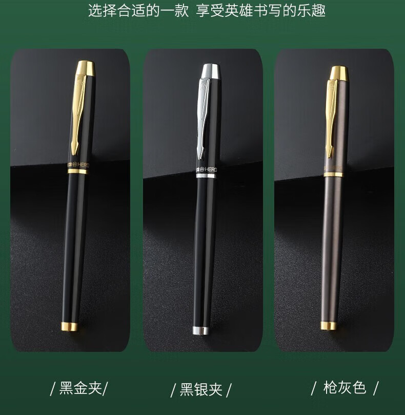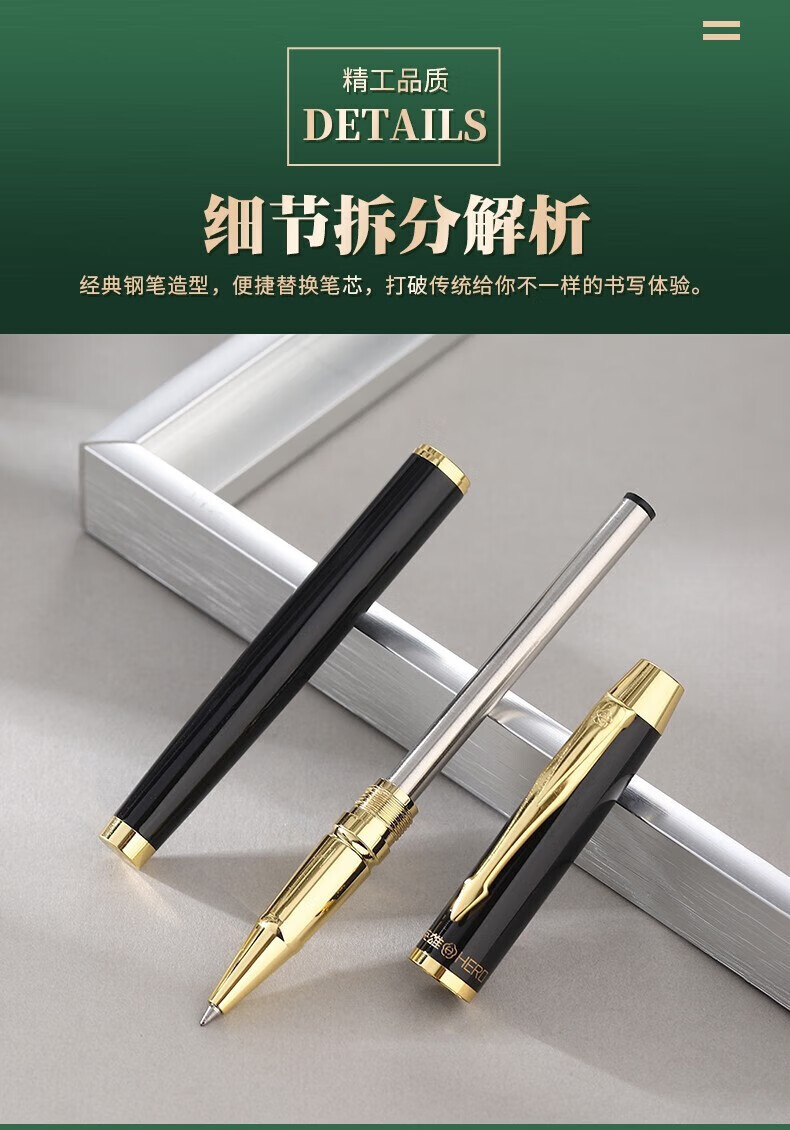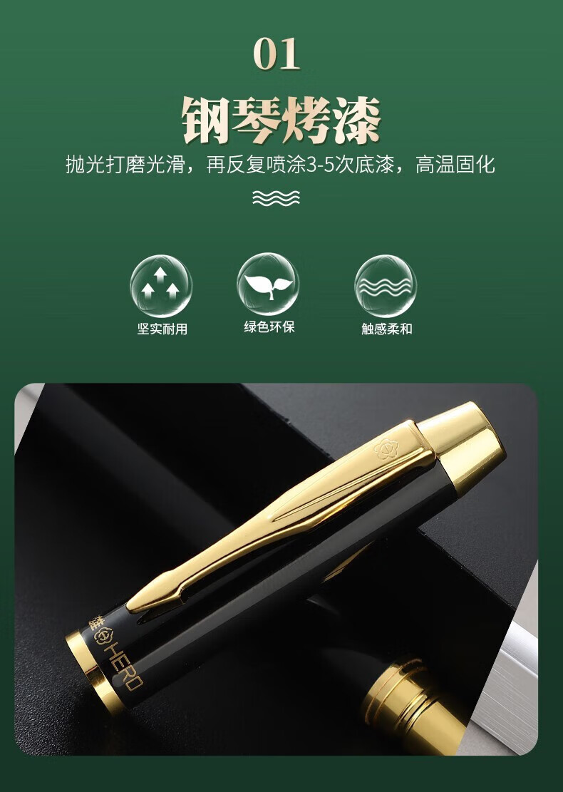 • 商品名称:英雄(HERO)宝珠笔 商务高档金属签字笔男女士签名笔 免费刻字 7006丽雅黑金夹(礼盒装)加3支笔芯 7006/盒