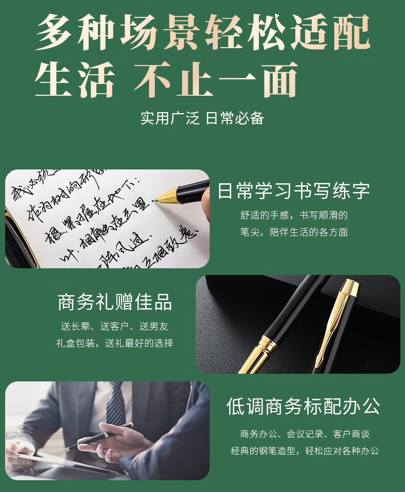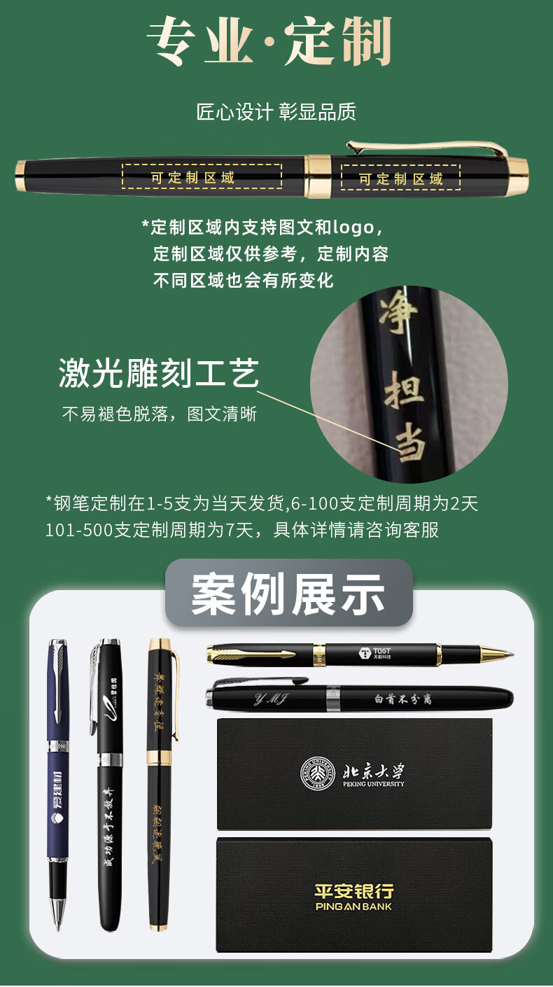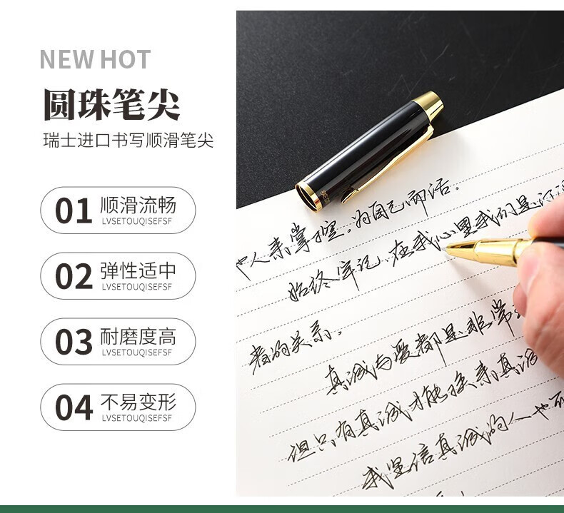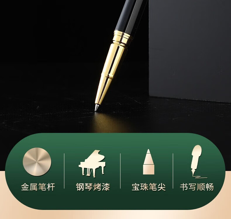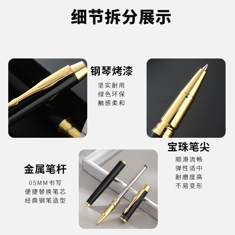 • 商品名称:英雄(HERO)宝珠笔 商务高档金属签字笔男女士签名笔 免费刻字 7006丽雅黑金夹(礼盒装)加3支笔芯 7006/盒
