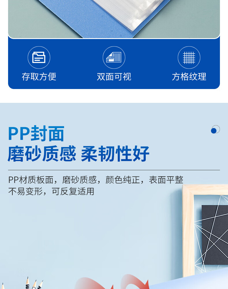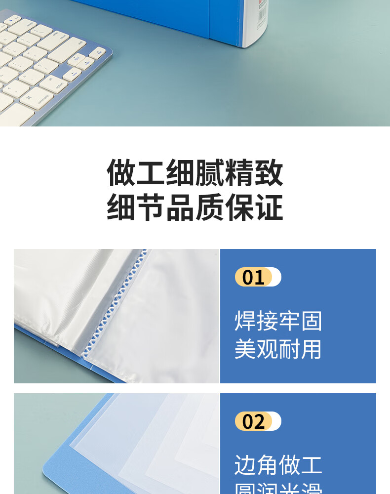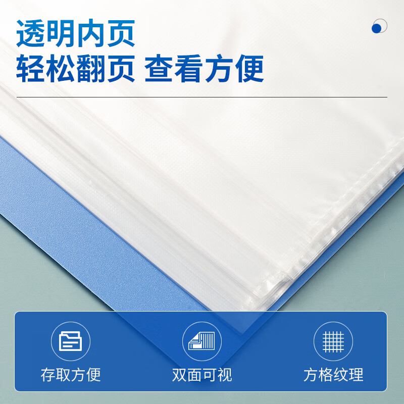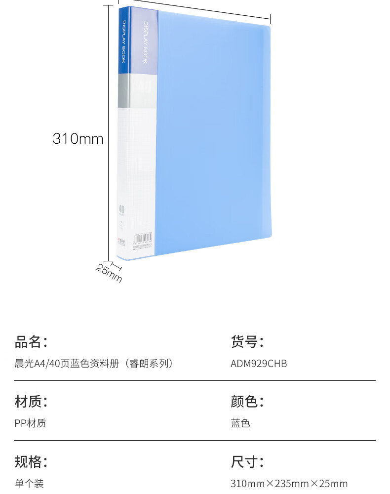 包装清单: 晨光(M&G)文具A4/40页蓝色资料册 防水办公文件册 睿朗系列文件插页袋文件夹 单个装ADM929CHB