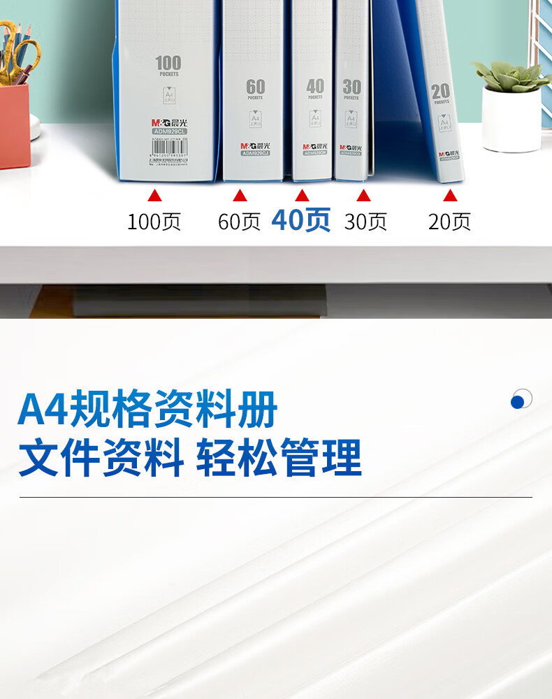 商品名称: 晨光(M&G)文具 A4/40页资料册 文件夹文件册插页袋票据收纳 ADM929CHB ADM929CHB/件