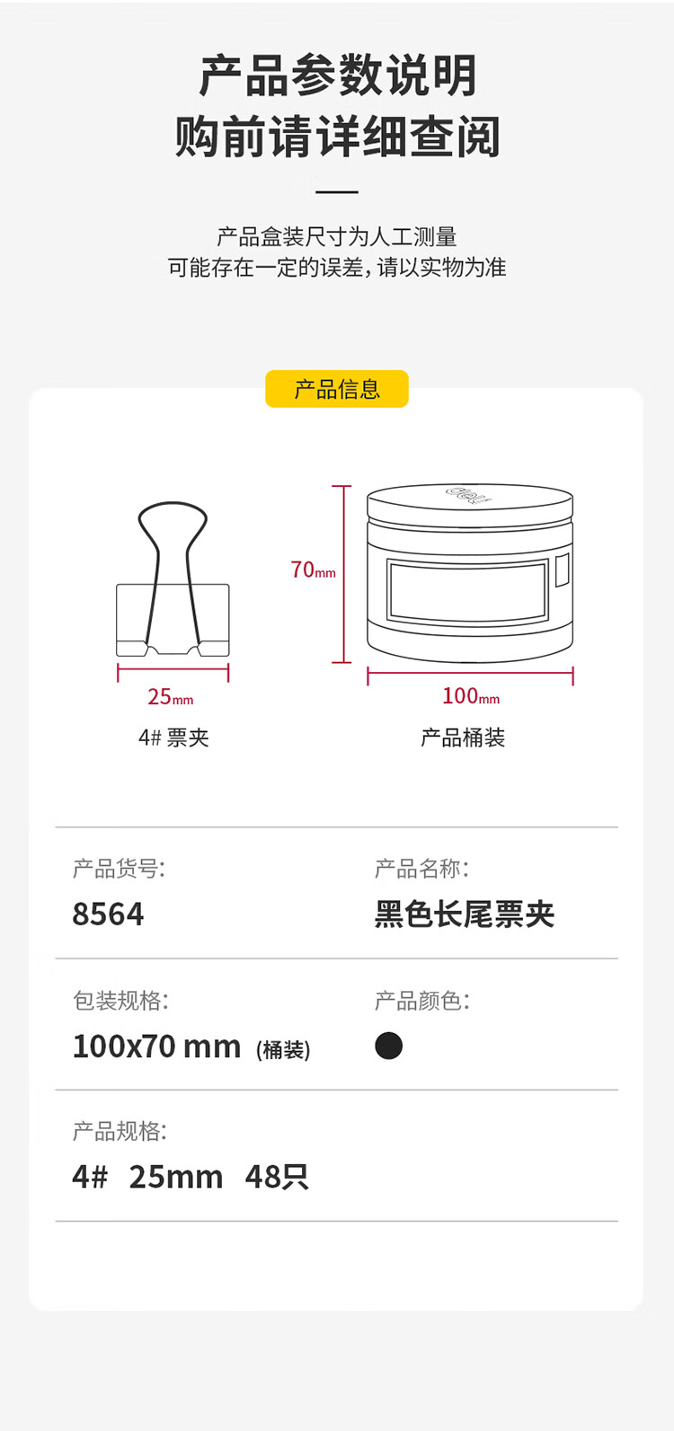 包装清单: 票夹48只/筒 × 1