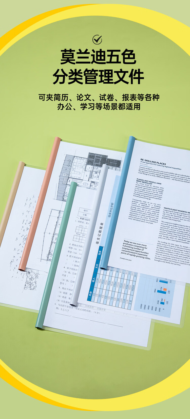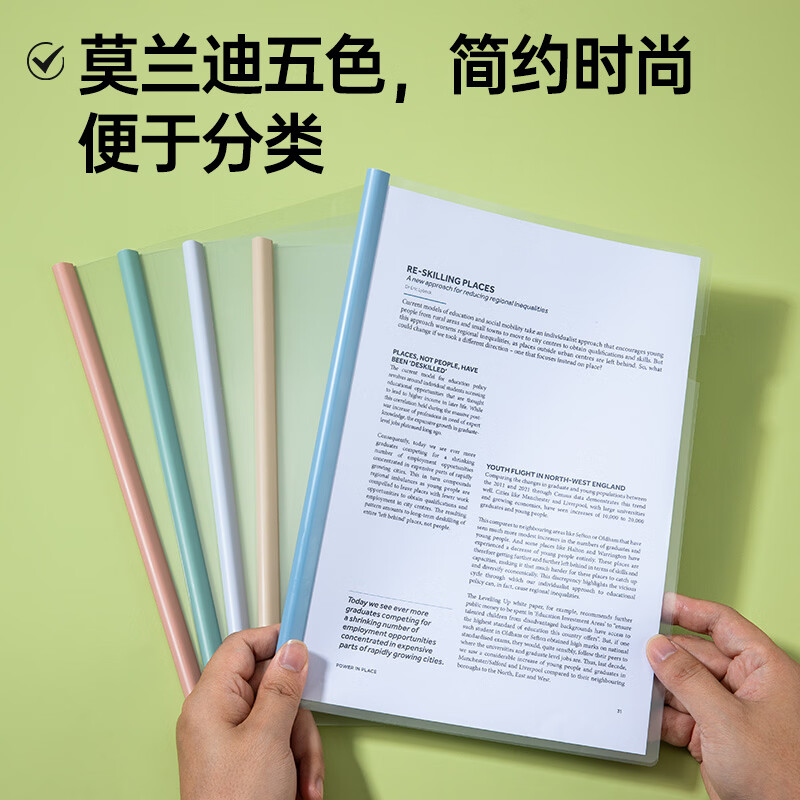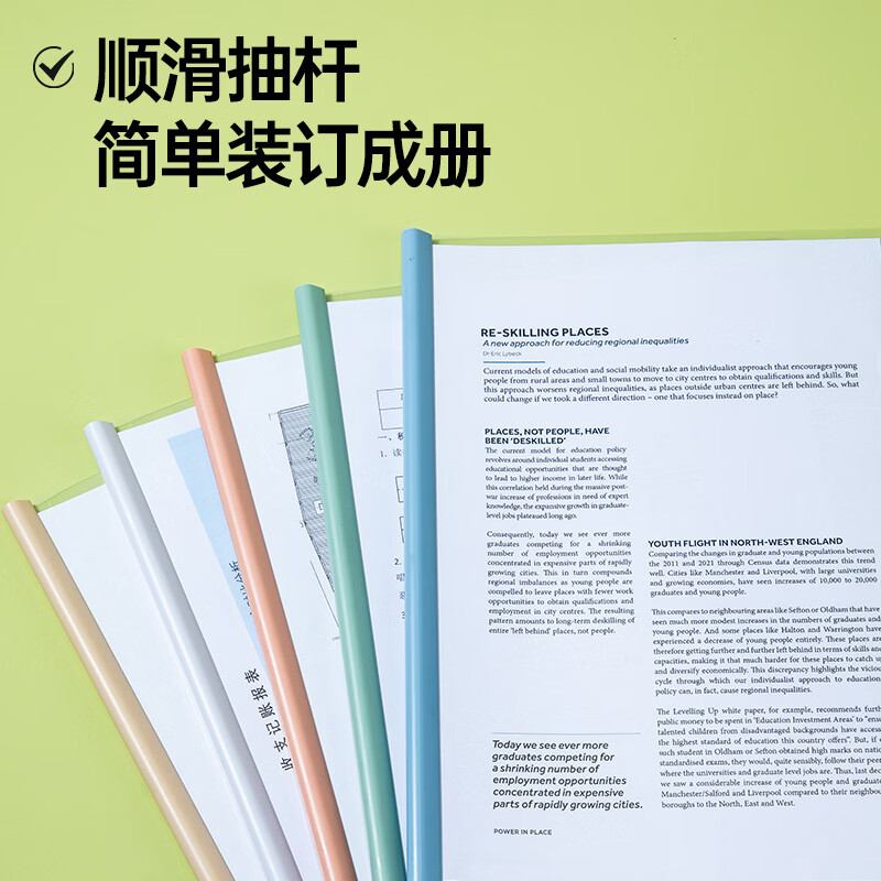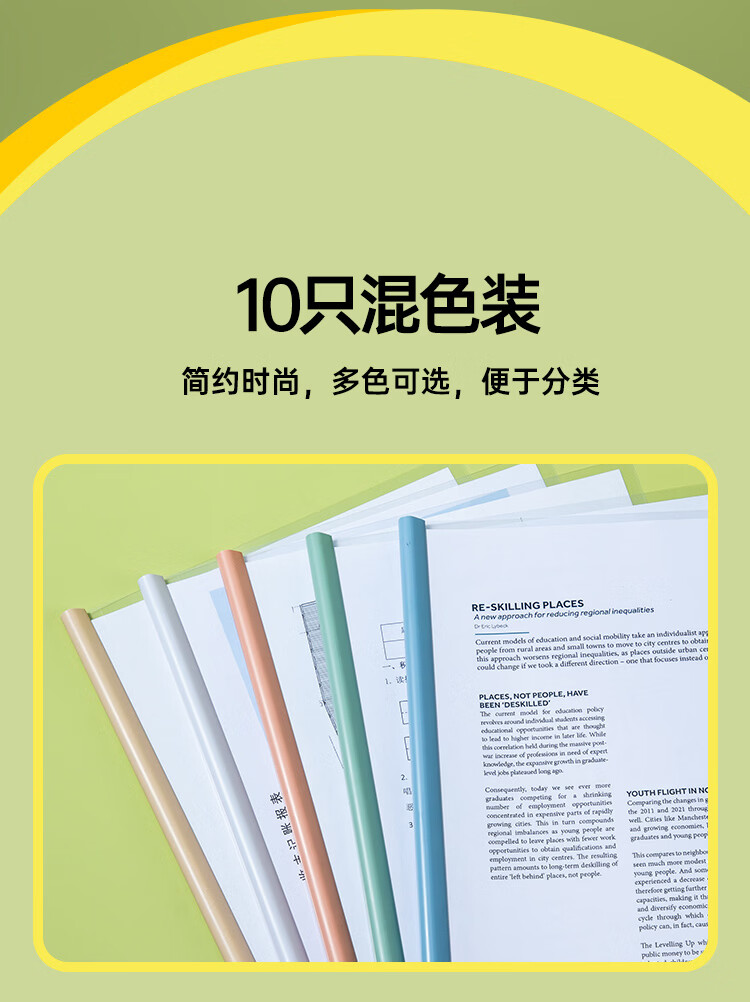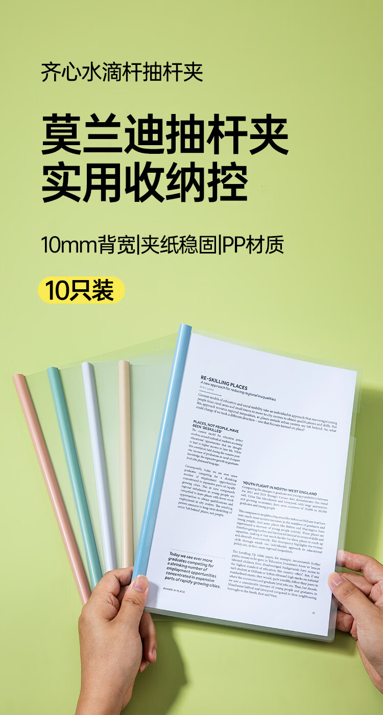 • 商品名称:齐心(COMIX)【超级爆款】10只彩色水滴杆抽杆夹学生试卷夹 A4/10mm背宽文件夹拉杆夹资料册莫兰迪色 EA3710 EA3710/套