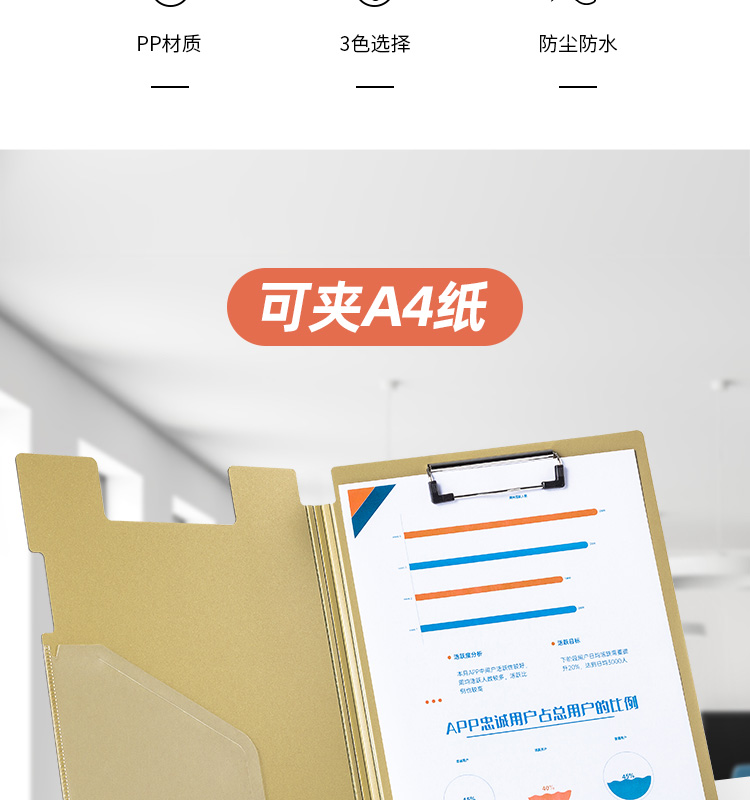 • 商品名称:天色 A4文件夹板竖式折页板夹 加厚发泡PP会议夹秘书夹资料夹试卷夹签字呈阅夹 办公用品 TS-1632 古铜棕 TS-1632/个