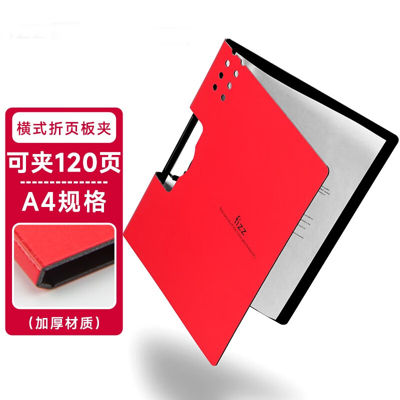 • 商品名称:飞兹(fizz)高质感A4横式折页板夹会议夹加厚硬文件夹/试卷收纳夹/办公用品/诗朗诵签约夹板红色A6380 A6380-6/个