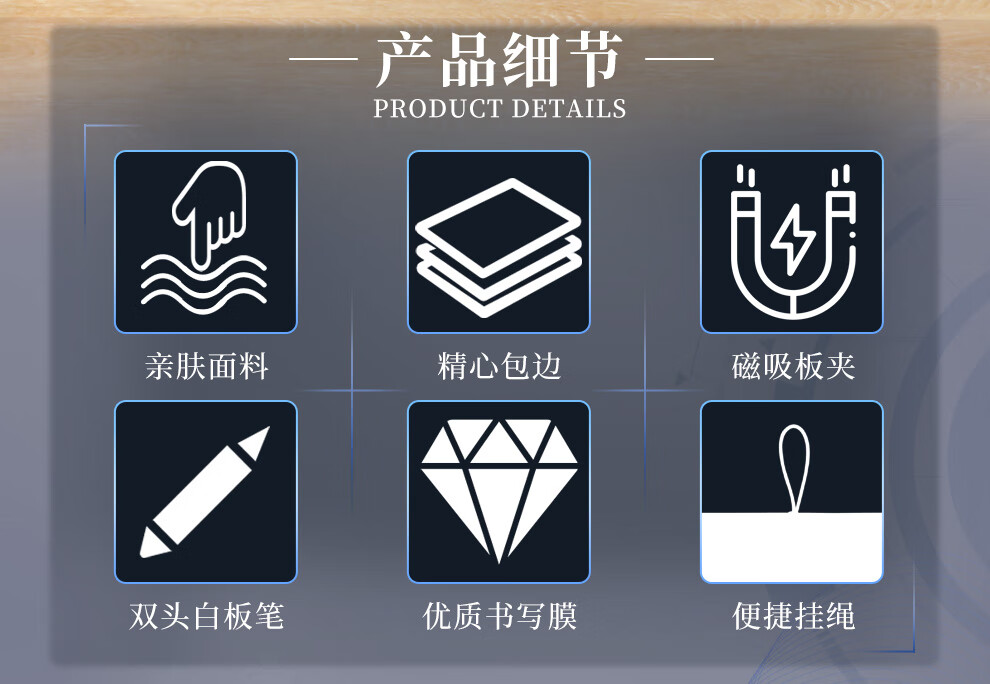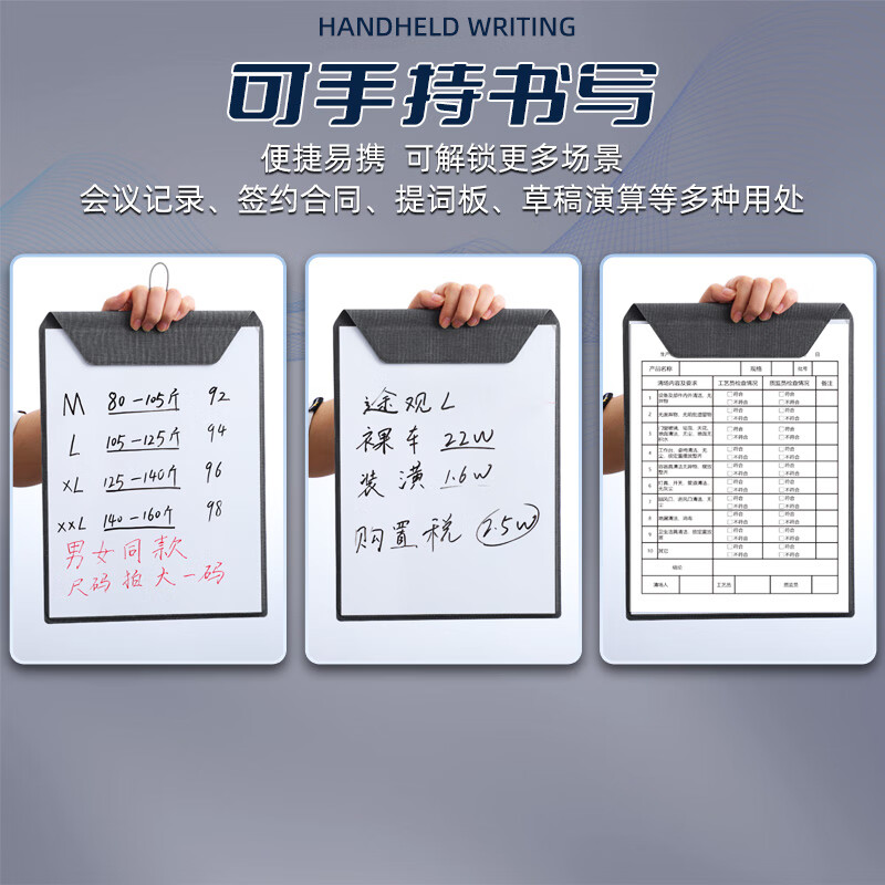 • 商品名称:朗捷 a4白板笔记本便携式板夹可擦式草稿本直播展示手写板记事留言写字板办公会议文件夹可定制 灰色 LG-BBBJ-0085/本