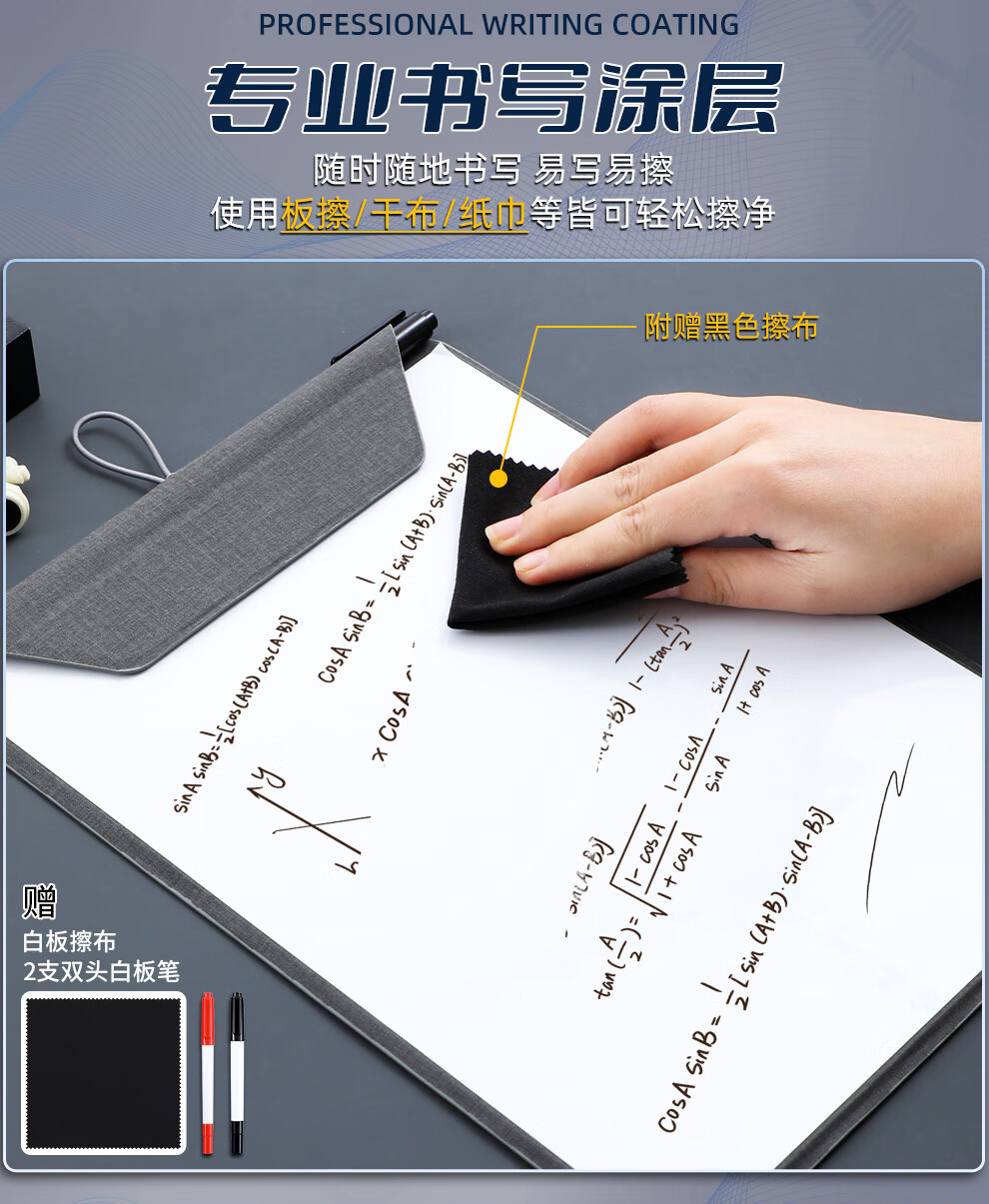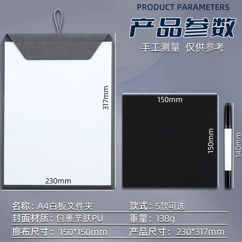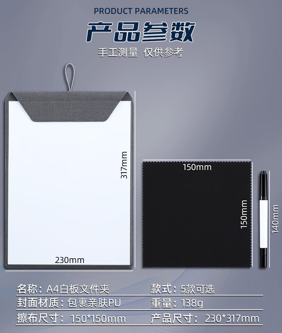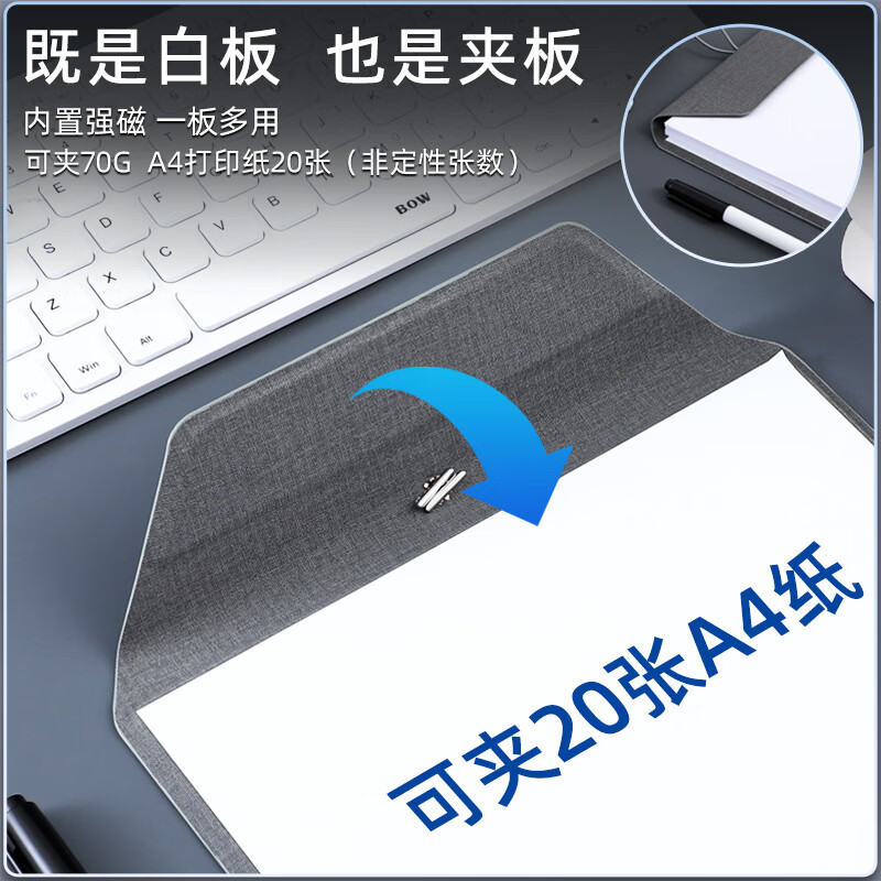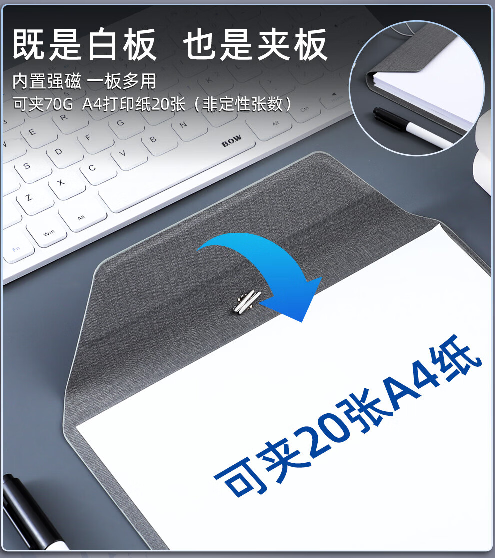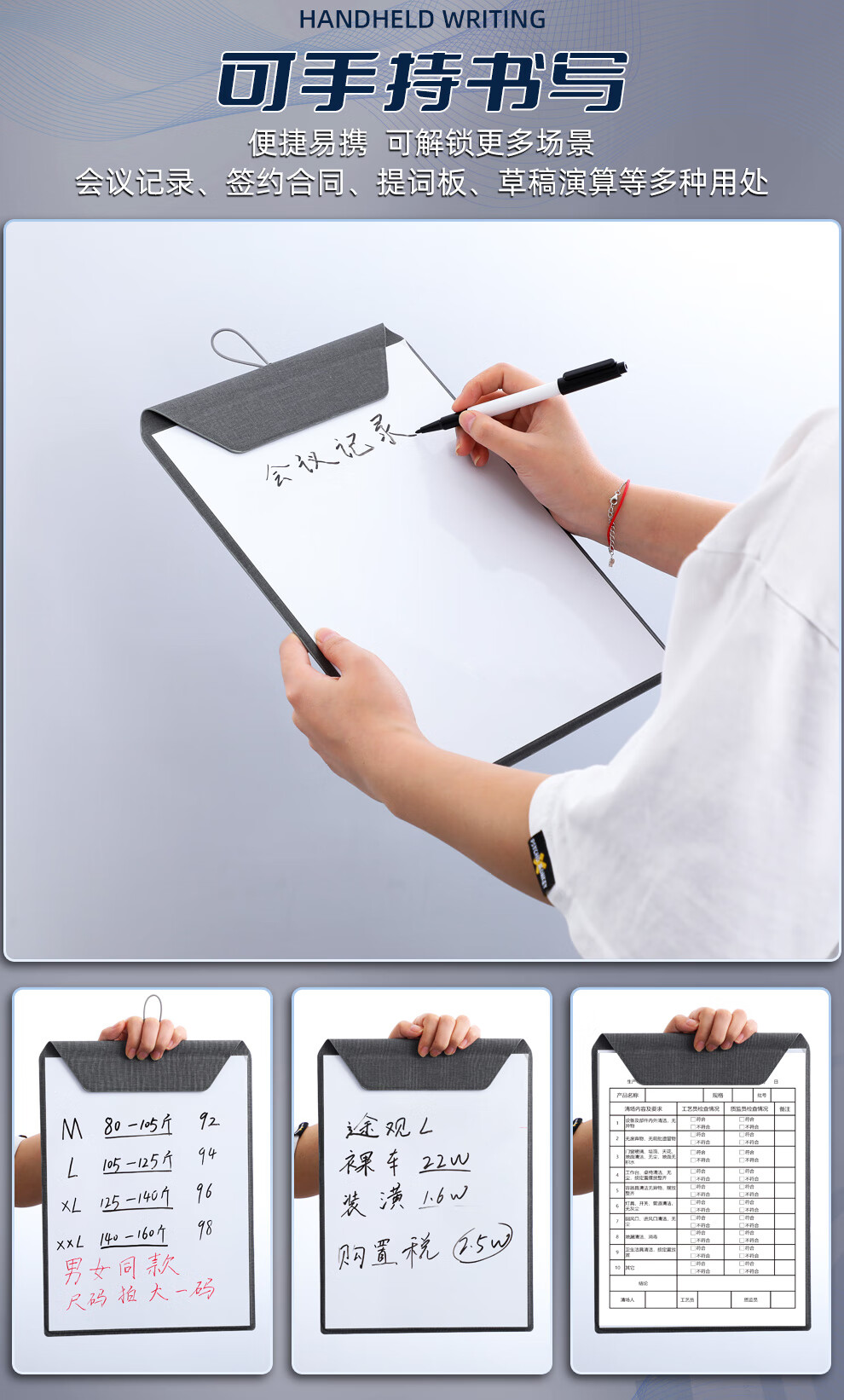 商品名称: 朗捷 a4白板笔记本便携式板夹可擦式草稿本直播展示手写板记事留言写字板办公会议文件夹可定制 灰色 LG-BBBJ-0085/本