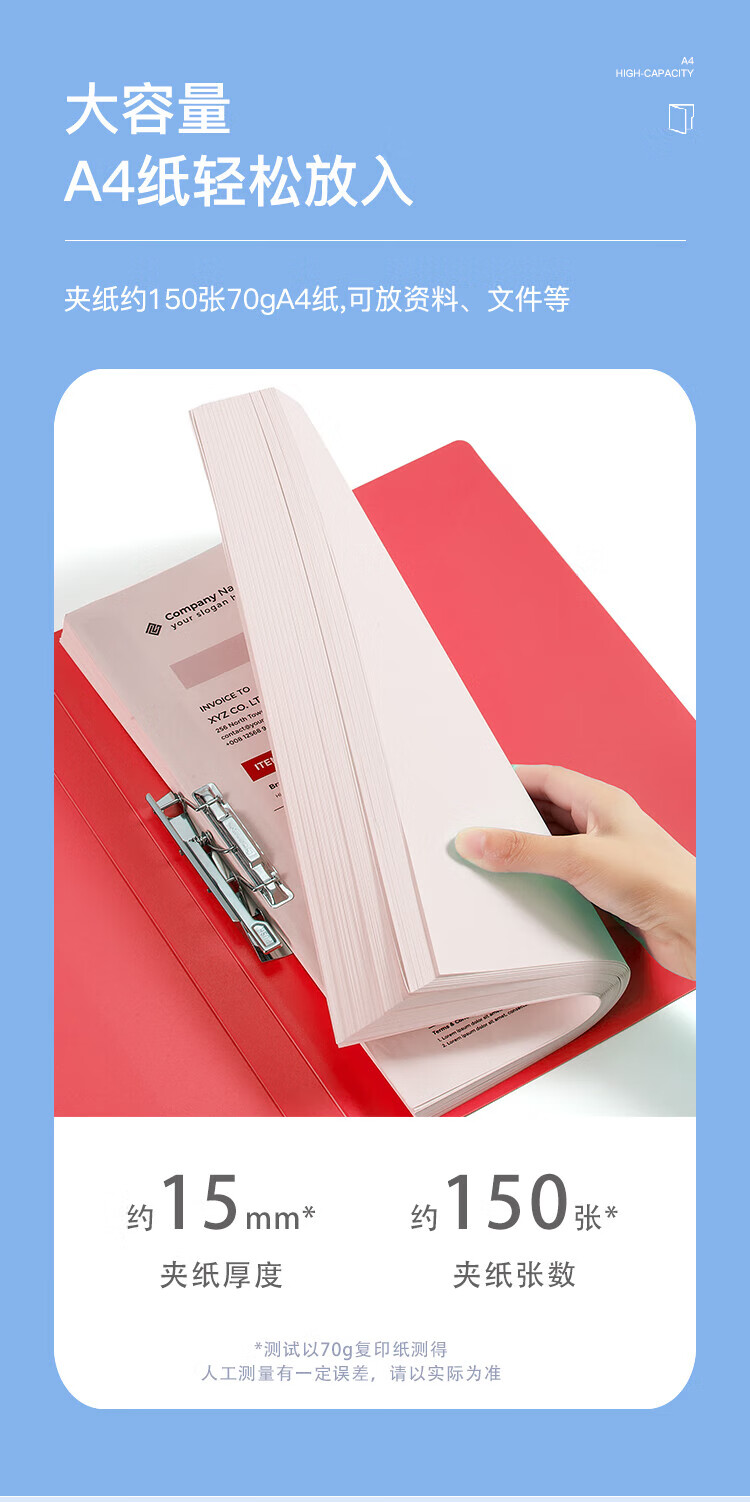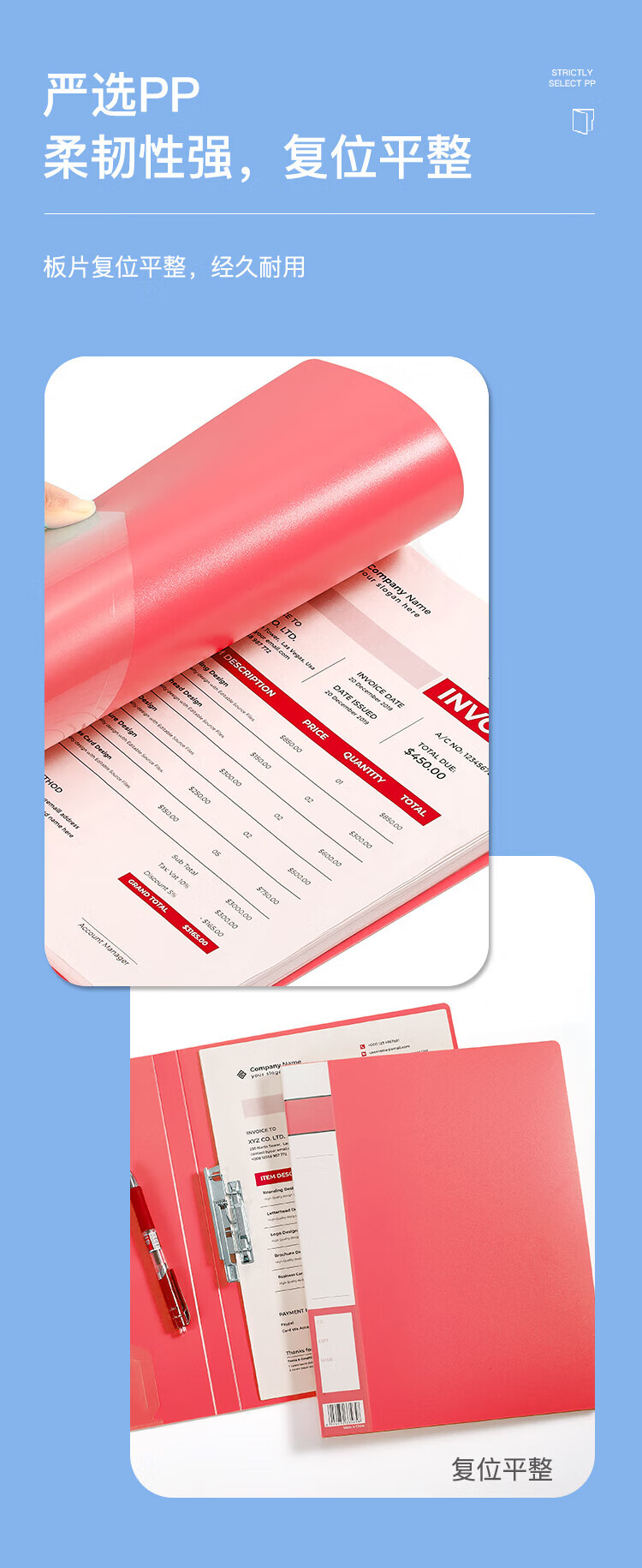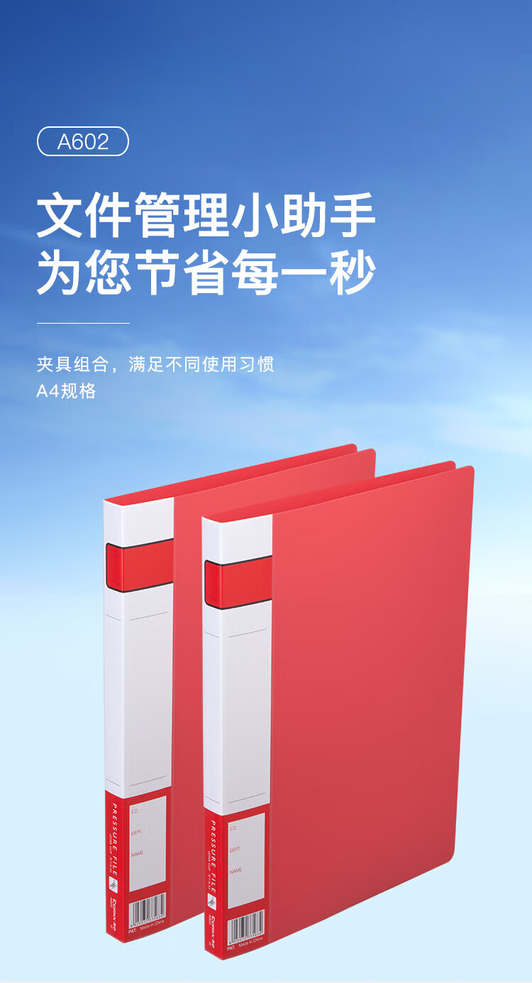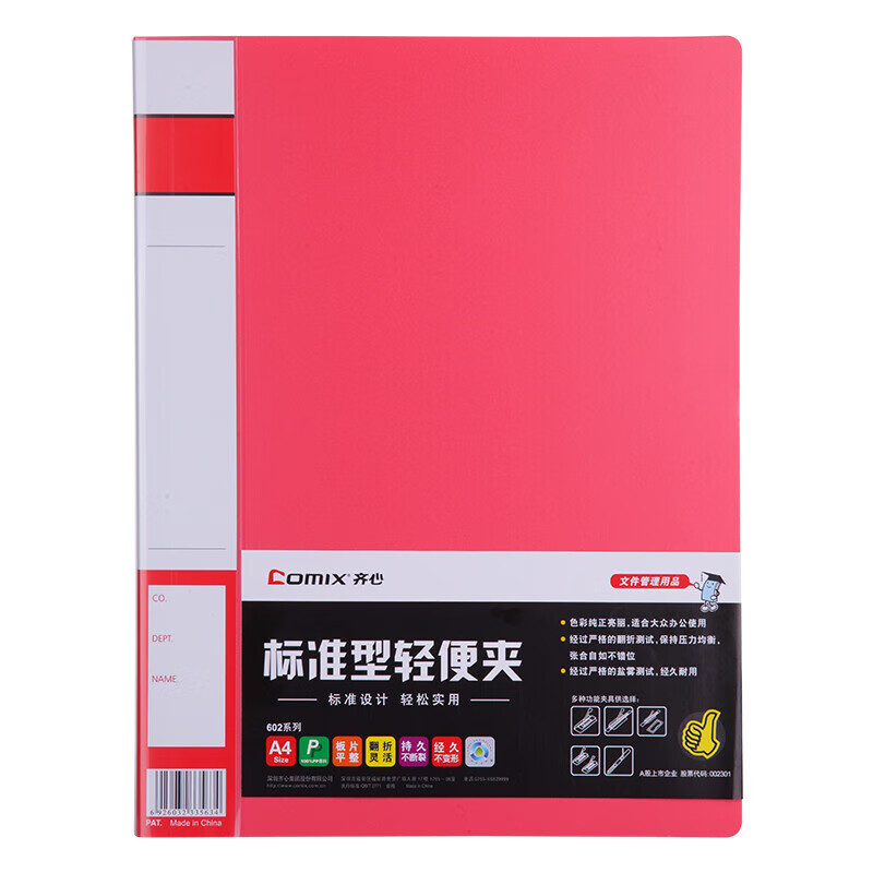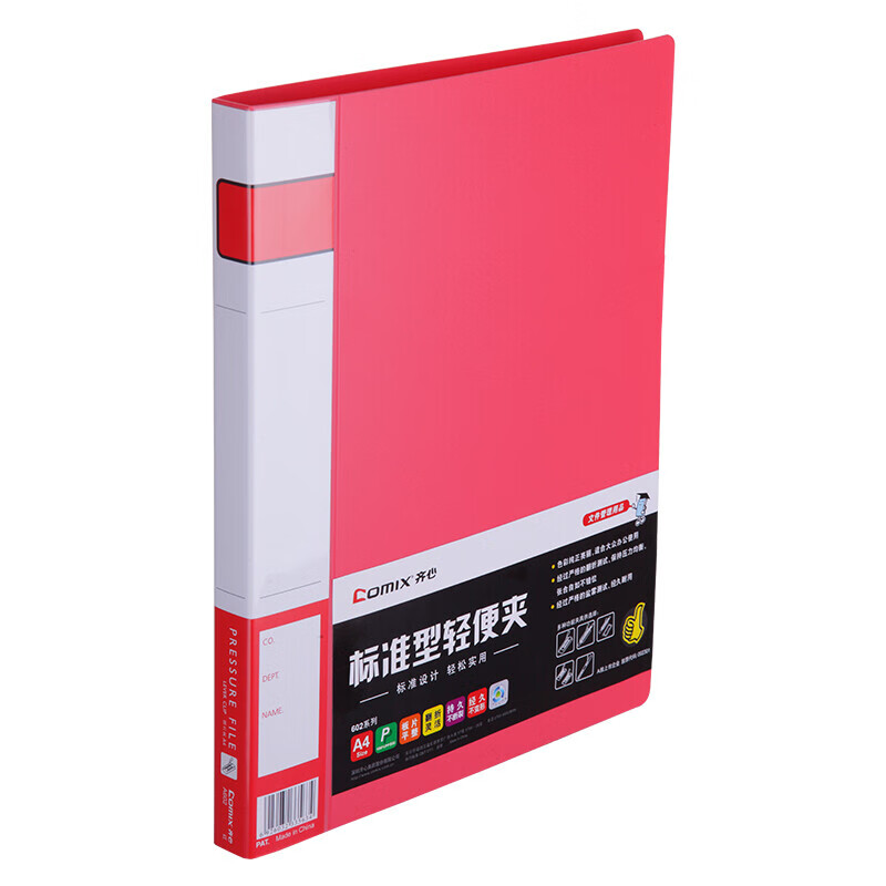 • 商品名称:齐心(COMIX)A4文件夹 单强力夹+插袋 红色 5个装 A602 可定制 A602/件