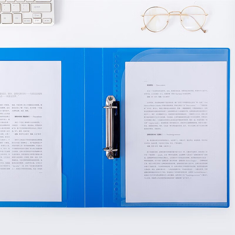 • 商品名称:绿文 6102D蓝色 2个装 打孔文件夹A4活页夹D型两孔插页双孔2孔收纳资料夹夹塑料学生用穿孔活动夹子 LW-6102D/个