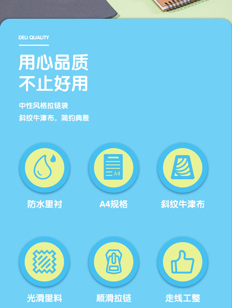 • 商品名称:得力(deli)手提拉链袋 布质学生资料袋文件袋 试卷收纳袋笔袋 颜色随机开学必备 DL-73150/个