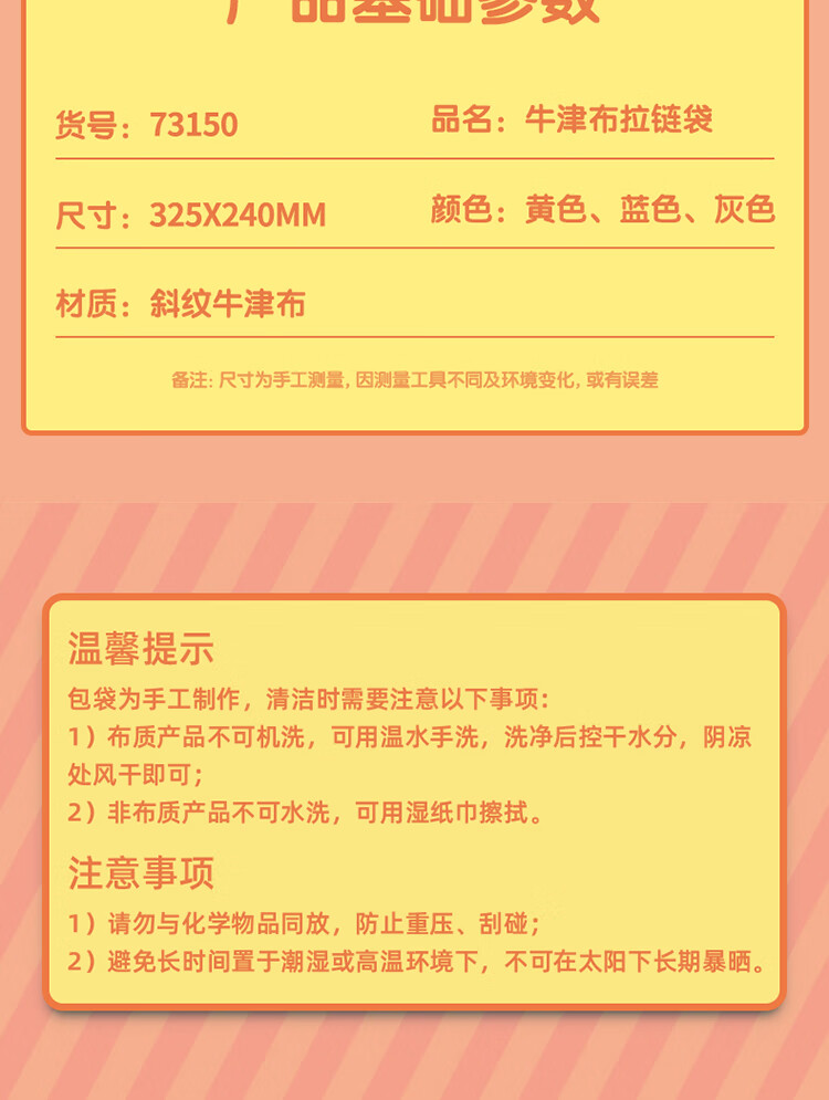 包装清单: 学生手提布质拉链袋×1