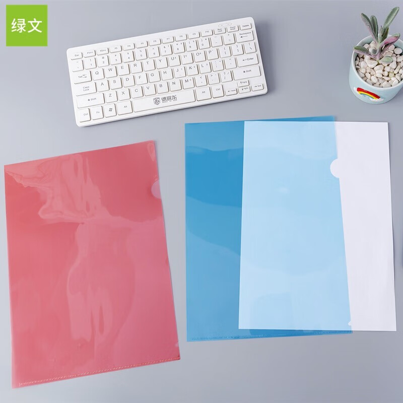 电脑、办公  > 文具  > 文件管理  >  绿文/LUWEN  >  绿文A4单片夹L型文件套绿色二单页文件袋办公档案资料插页夹子24个装绿 E310/包