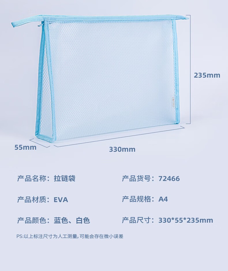 商品名称: 得力(deli) 加厚拉链袋A4透明文件袋收纳袋 大容量A5防水资料袋 72466-A4加宽拉链袋 HY 72466/个