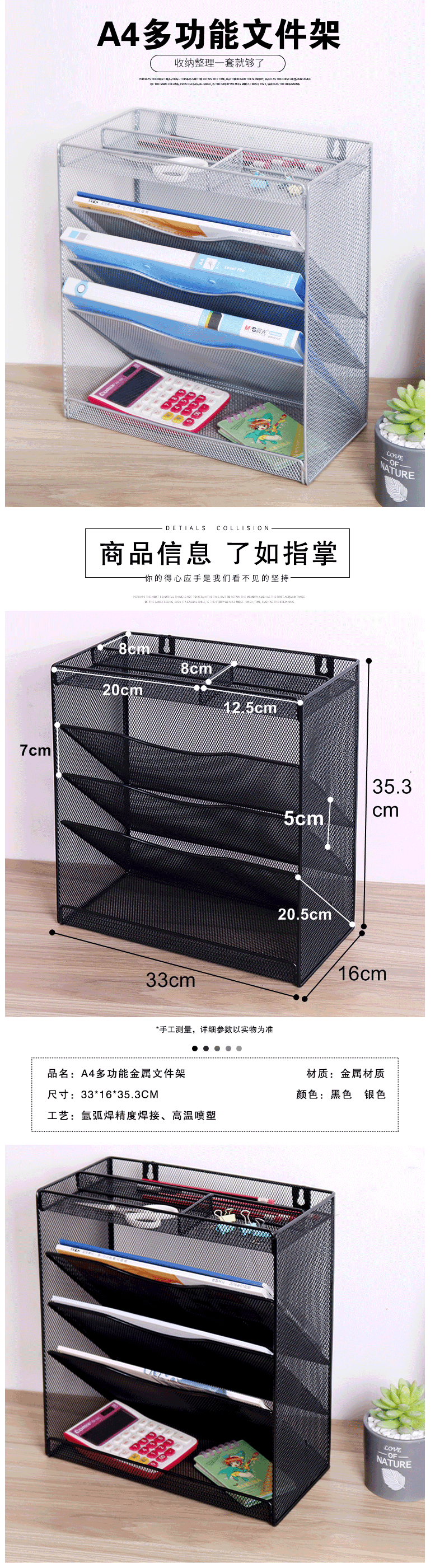 商品名称: Homeglen 金属铁艺A4文件框壁挂多层多功能收纳置物架办公学生文具资料篮子 银色 置物架/个