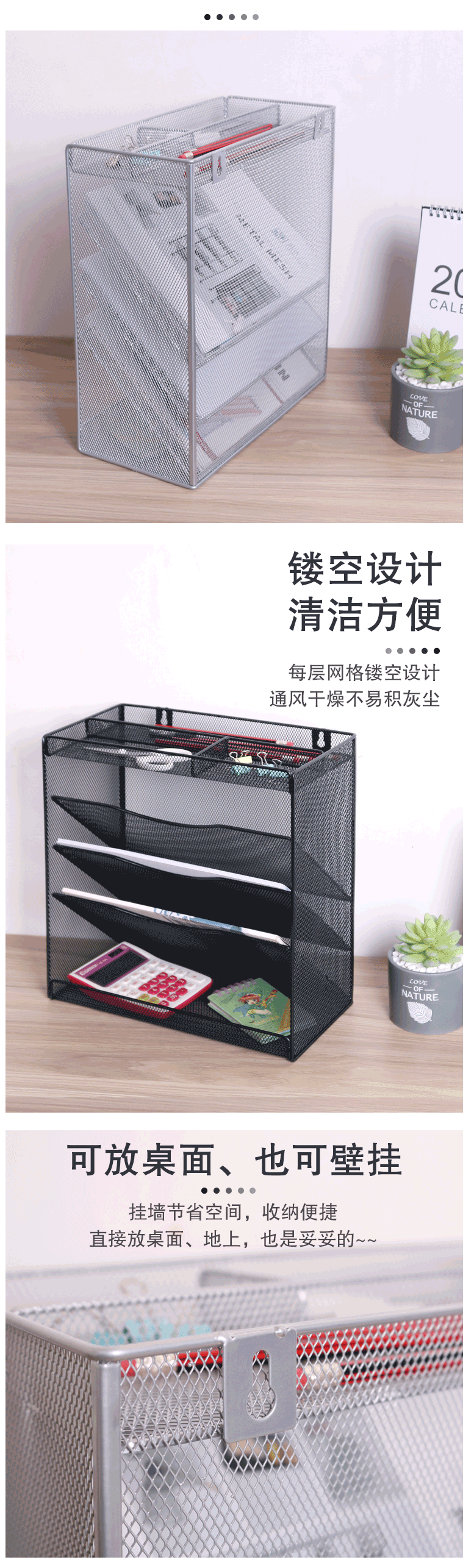 • 商品名称:Homeglen 金属铁艺A4文件框壁挂多层多功能收纳置物架办公学生文具资料篮子 银色 置物架/个