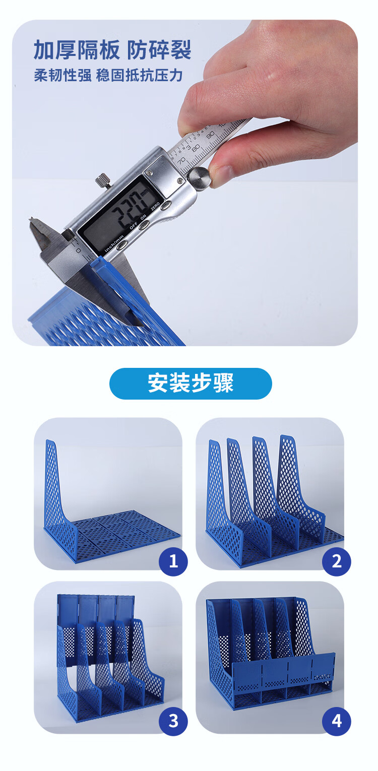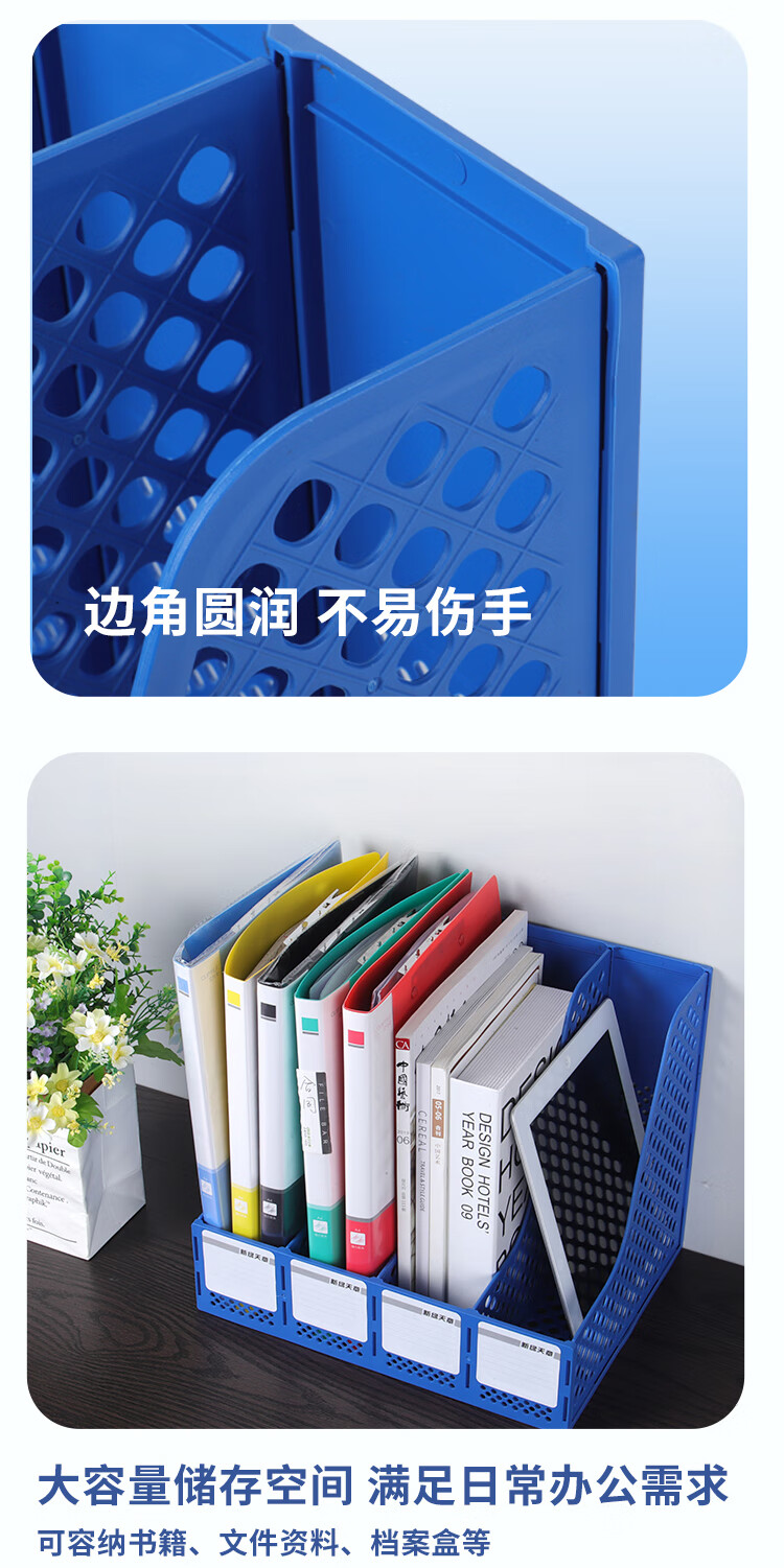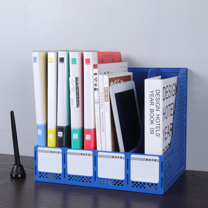 • 商品名称:天章 (TANGO) 新绿天章 四联文件框文件架文件盘桌面书立办公四栏带标签4联资料文件架资料书本收纳架蓝色 0170 加厚加固四联文件框/个