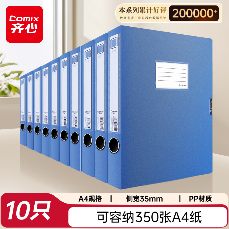 齐心(COMIX)10个装35mm牢固耐用粘扣档案盒/A4文件盒/资料盒 绯蓝色 标签 办公用品EA1001-10 EA1001-10/套