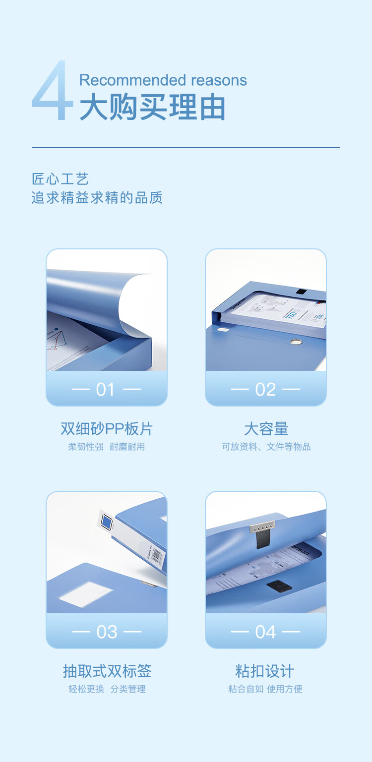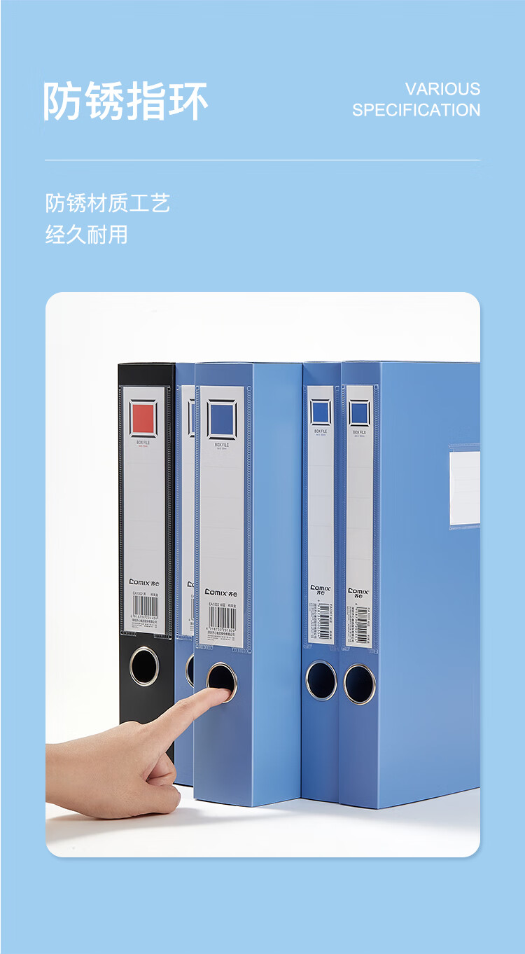 • 商品名称:齐心(COMIX)10个装35mm牢固耐用粘扣档案盒/A4文件盒/资料盒 绯蓝色 标签 办公用品EA1001-10 EA1001-10/套