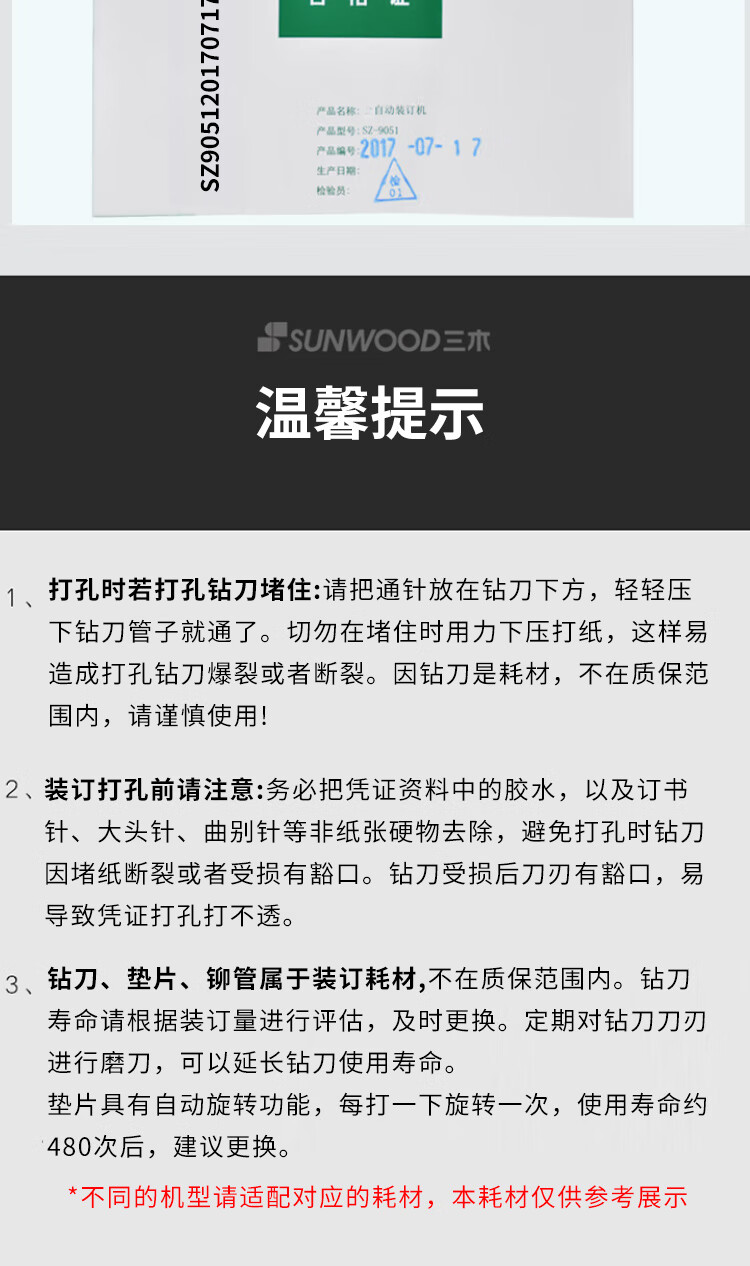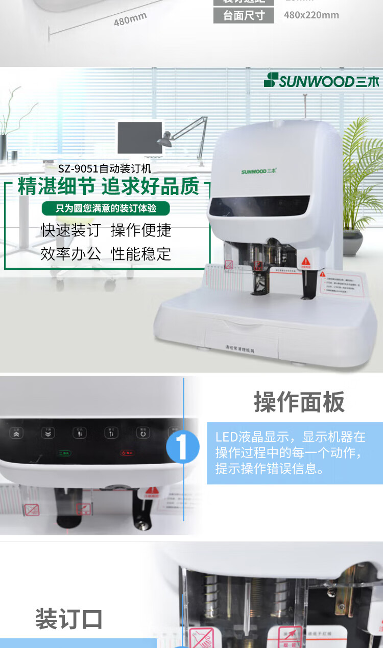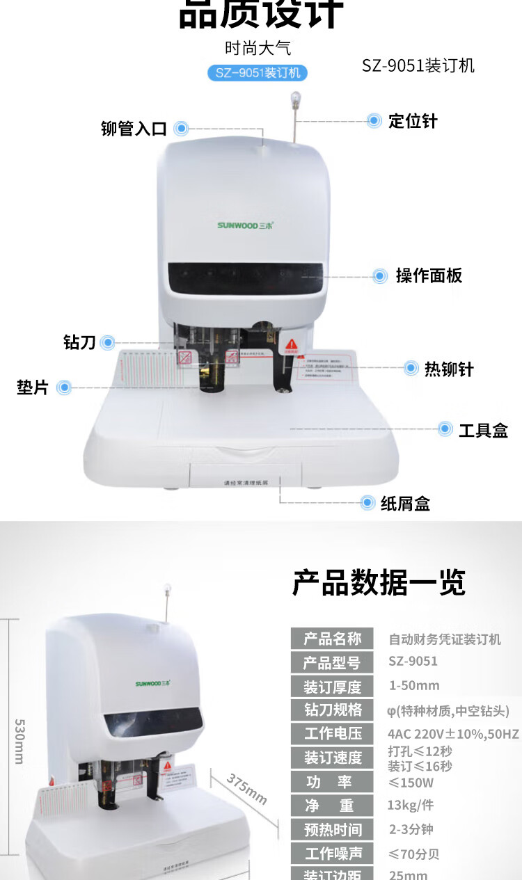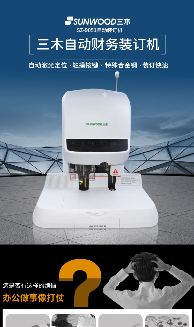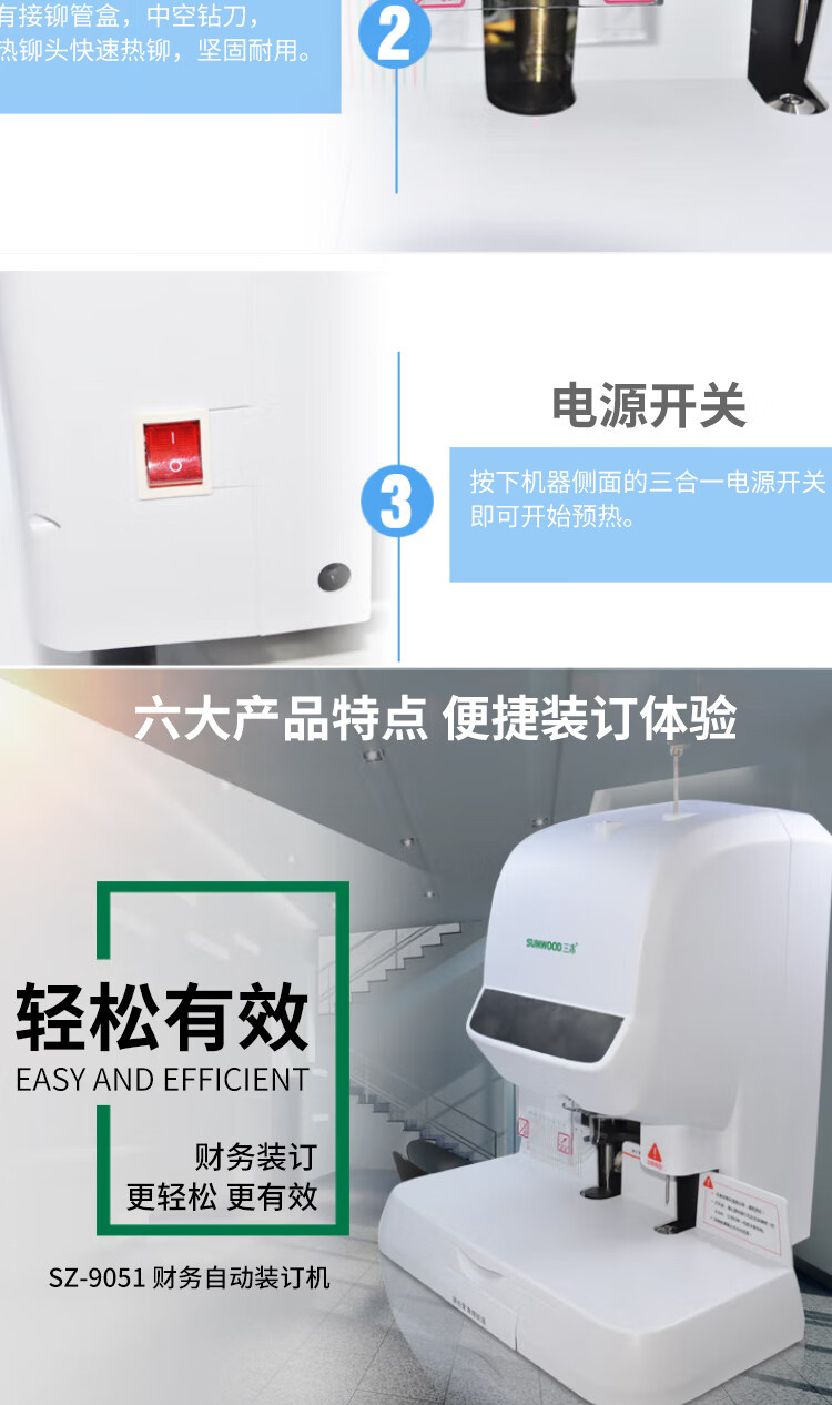 • 商品名称:三木(SUNWOOD)SZ-9051 50MM自动财务凭证装订机 SZ9051/台