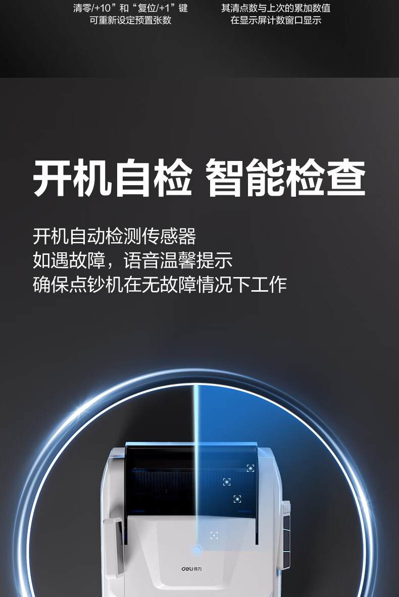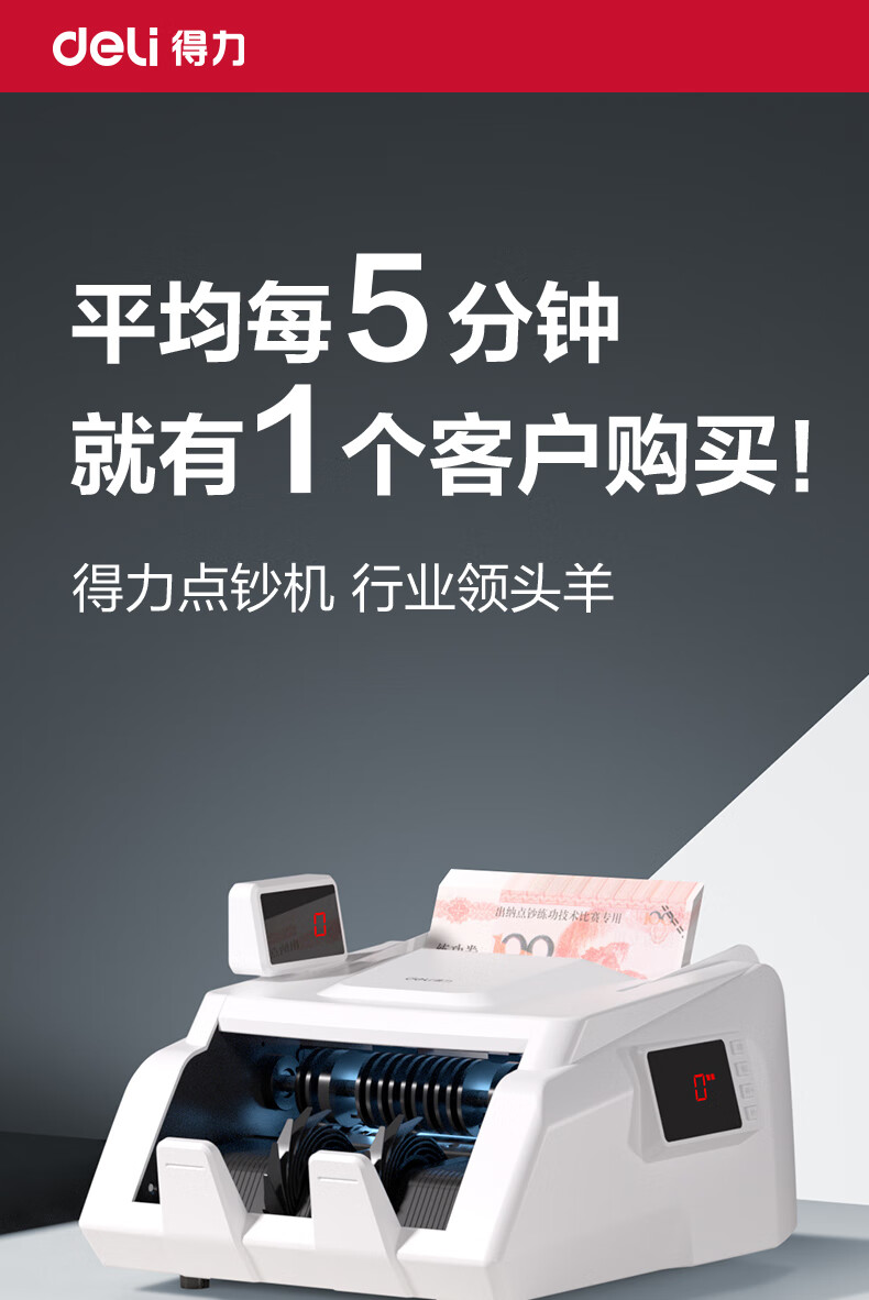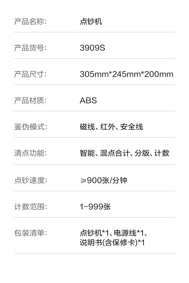 • 商品名称:得力点钞机 验钞点钞机小型便携 支持新版人民币 银行专用家用收银支付点钞数钱机 双屏国标C类3909S 3909/台