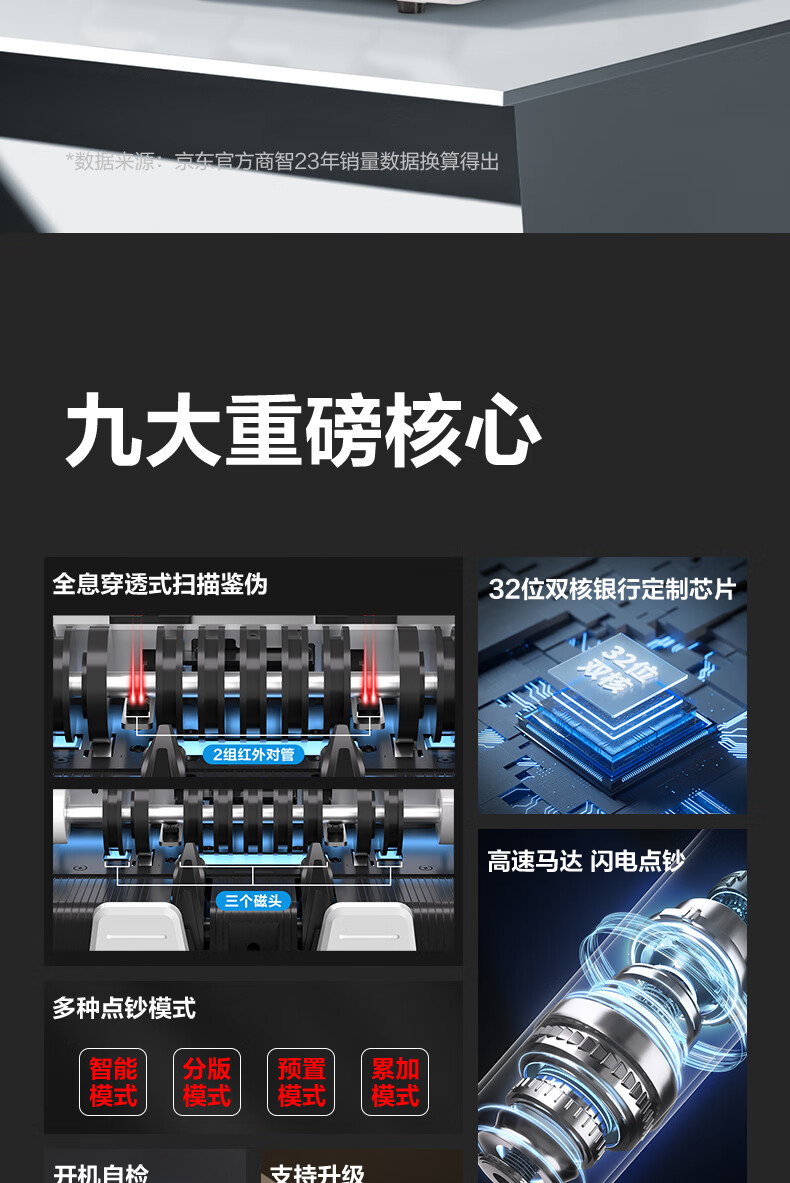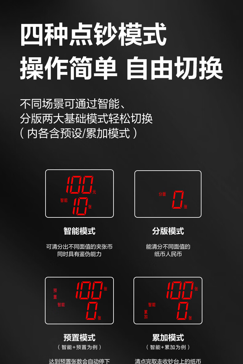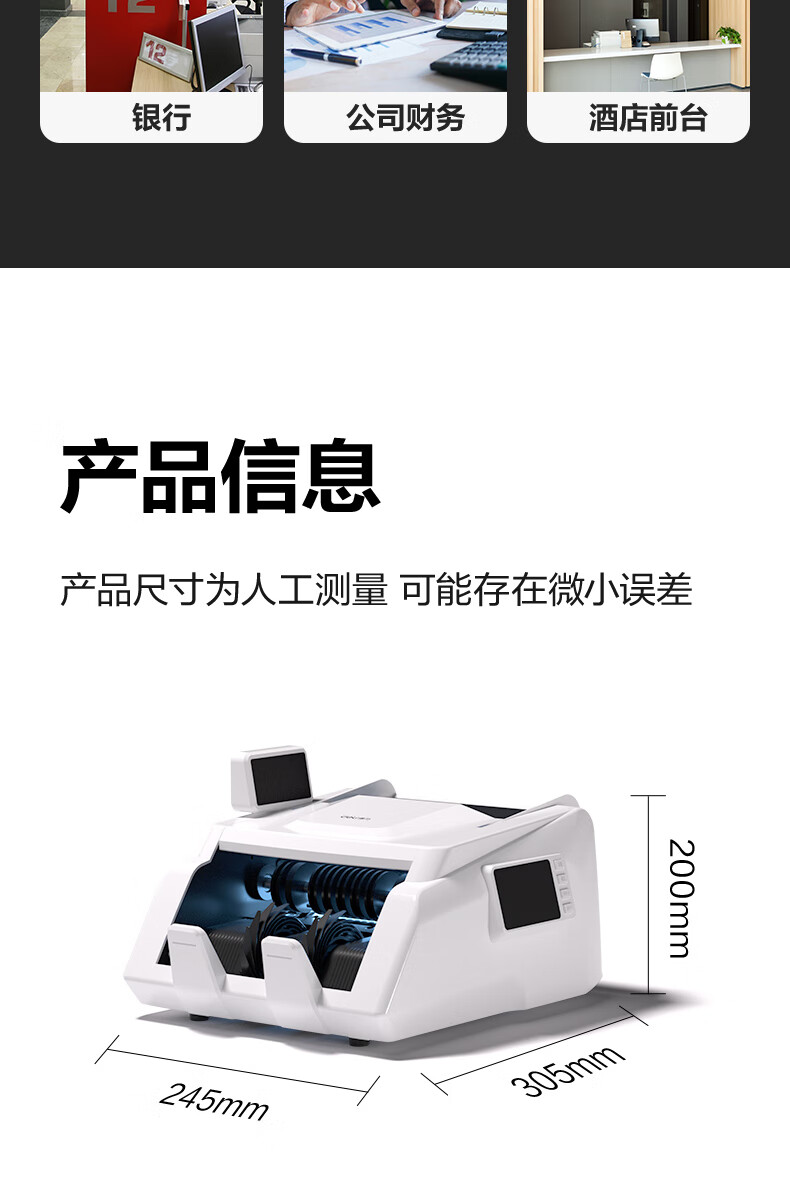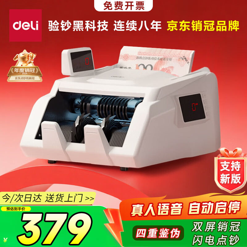• 商品名称:得力点钞机 验钞点钞机小型便携 支持新版人民币 银行专用家用收银支付点钞数钱机 双屏国标C类3909S 3909/台