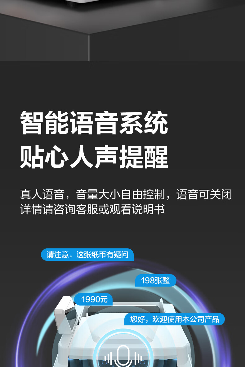 包装清单: 点钞机× 1 电源线 × 1 说明书(含保修卡)× 1 合格证 × 1 包装箱 × 1