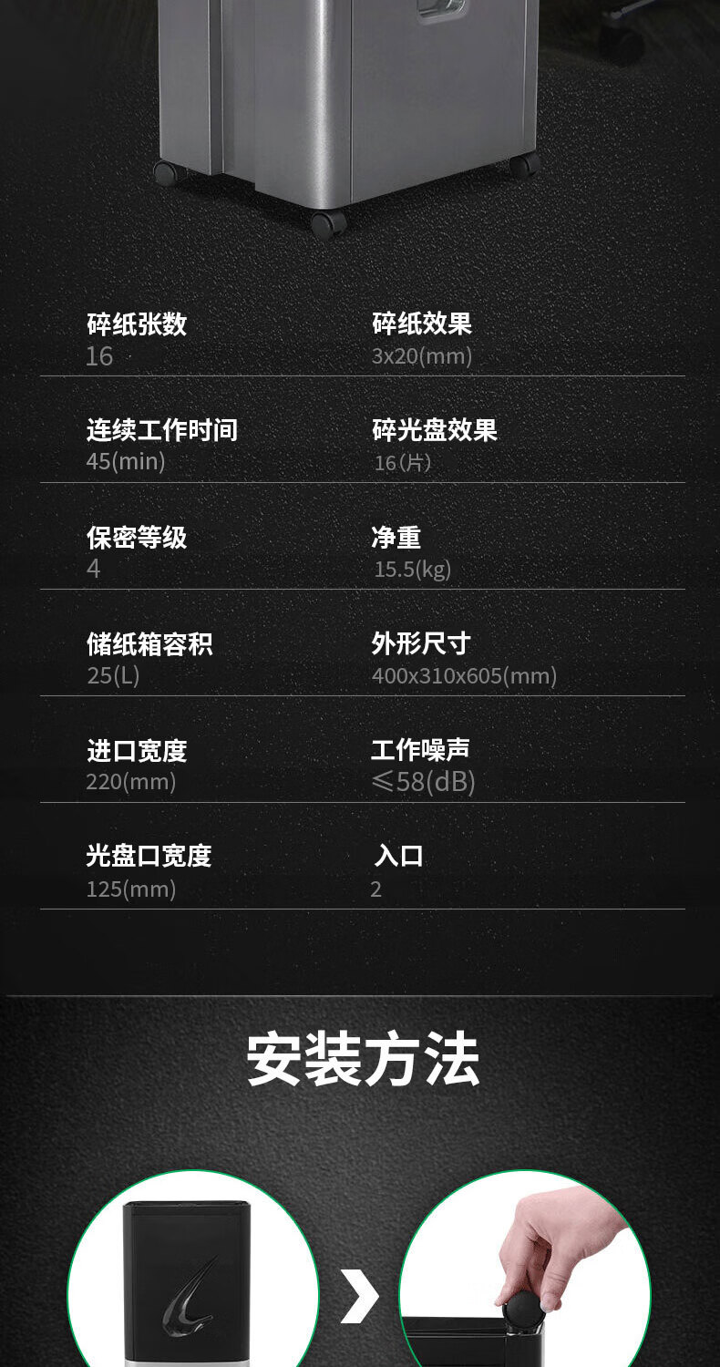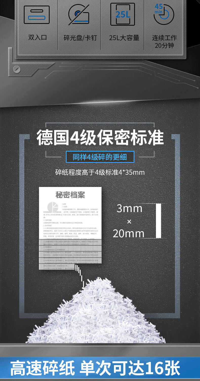 • 商品名称:三木(SUNWOOD)M系列碎纸机 4级保密 双入口(单次16张 持续45分钟 25L 可碎卡,光盘,纸,针)M83 厂家直发 M83/台