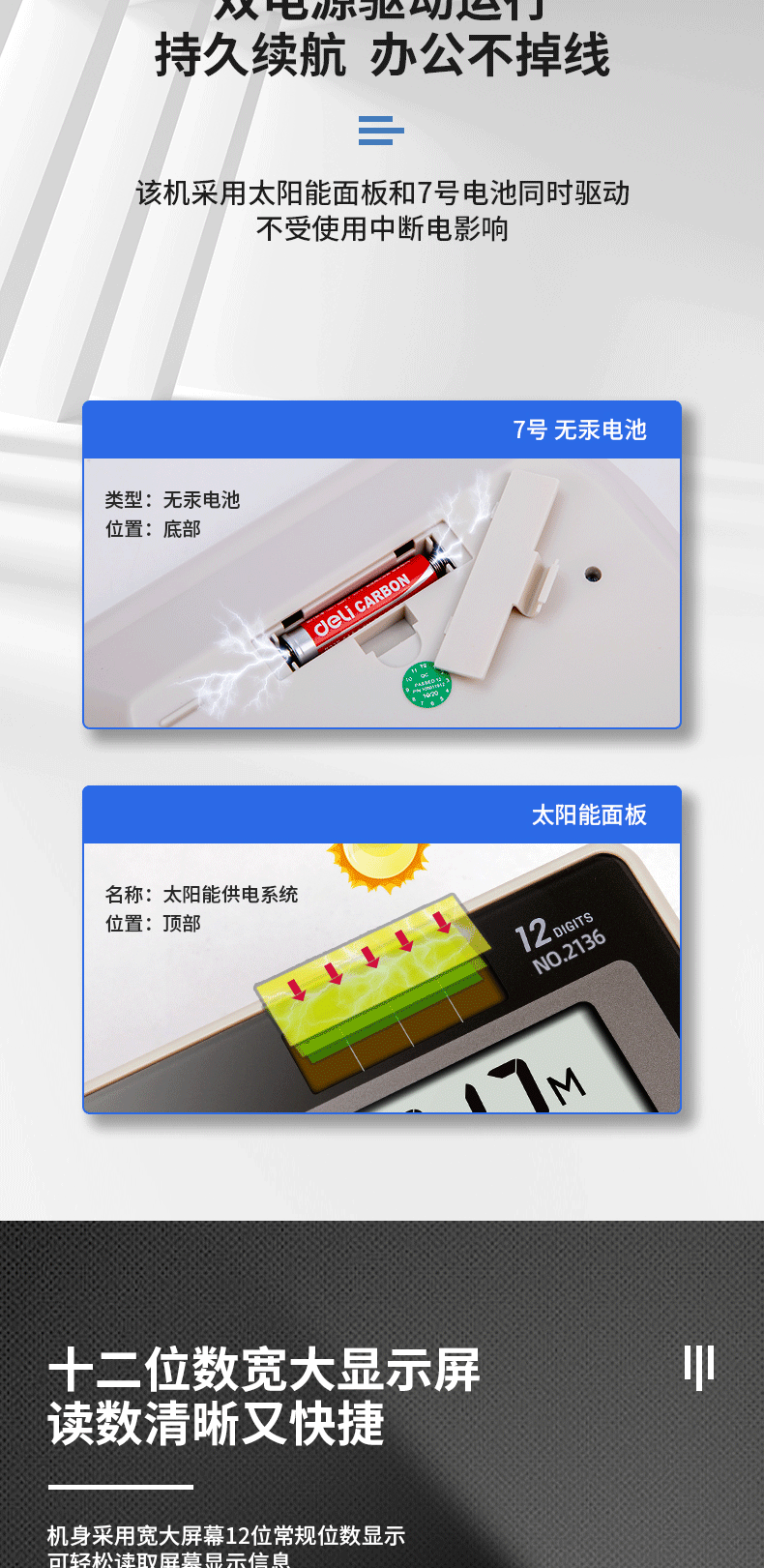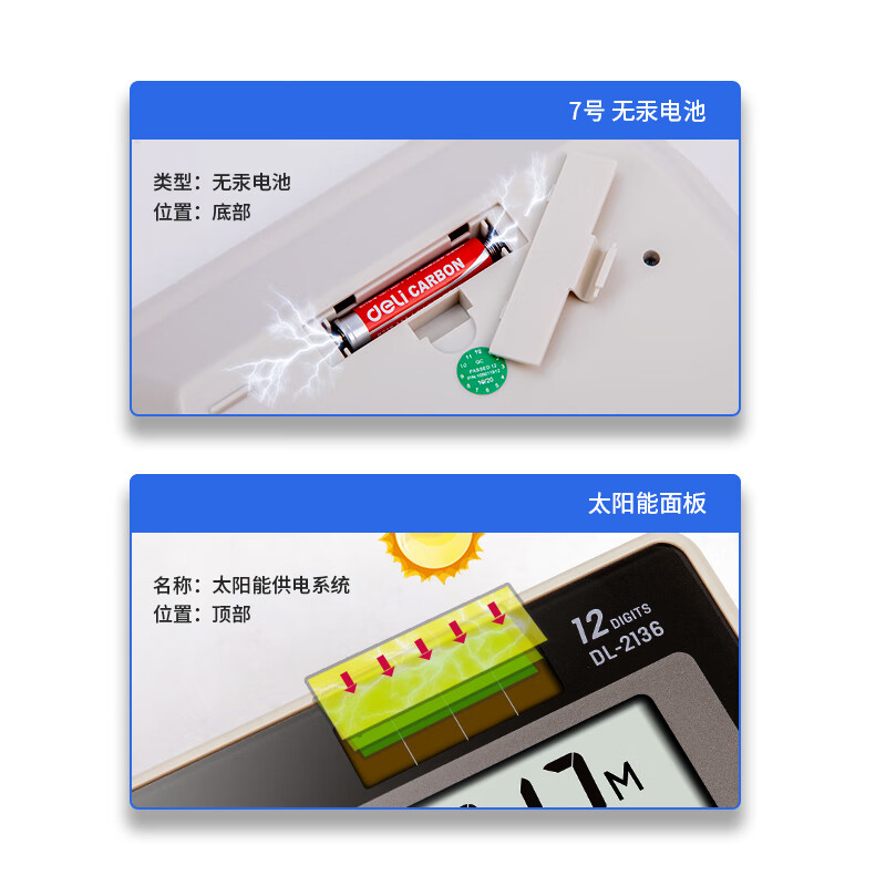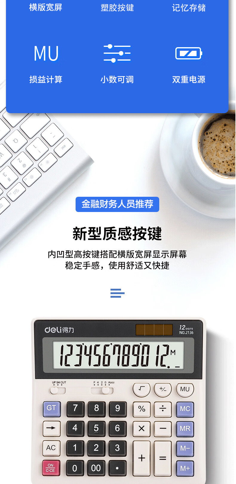 得力(deli)双电源电脑按键计算器 12位大屏横式桌面计算机 金融财务 办公用品 白色2136 新老混发 2136/件