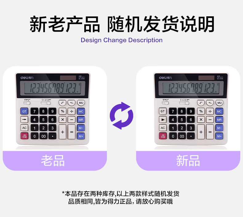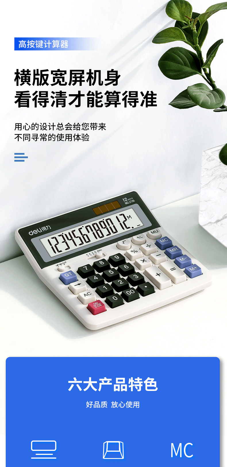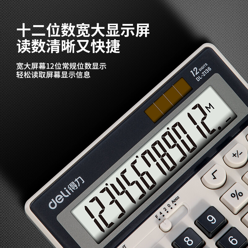 商品名称: 得力(deli)双电源电脑按键计算器 12位大屏横式桌面计算机 金融财务 办公用品 白色2136 新老混发 2136/件