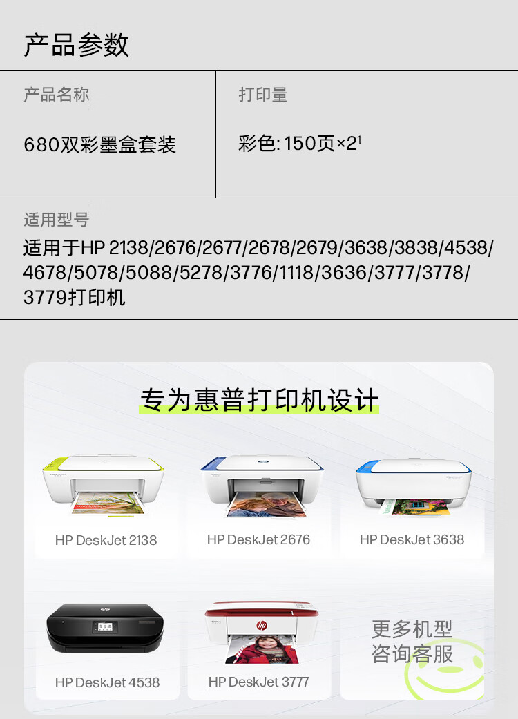 包装清单: HP 680彩色墨盒×2