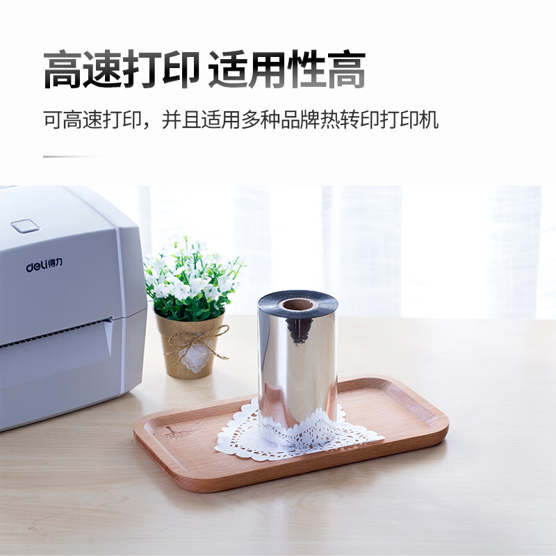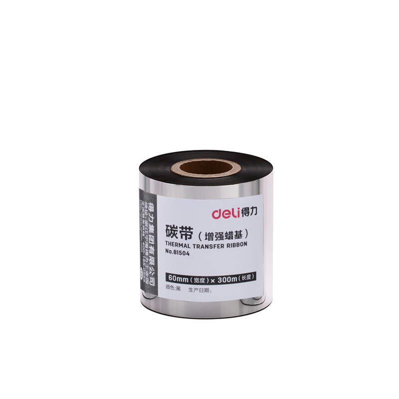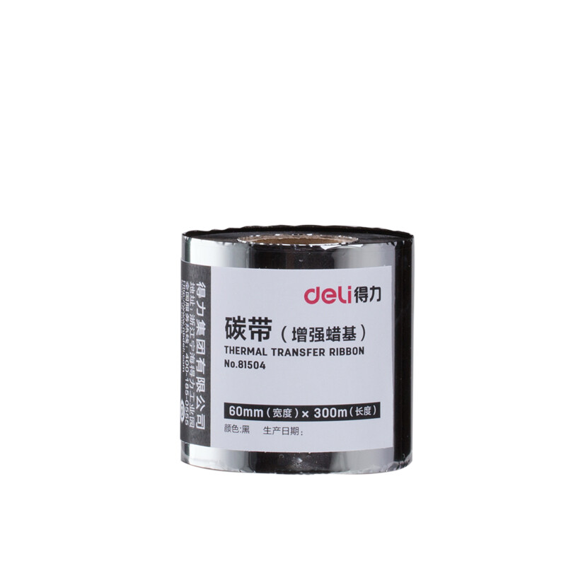 得力(deli)60mm*300m热转印条码打印机 标签机打印碳带 通用型增强蜡基碳带81504(单支装) 81504/支