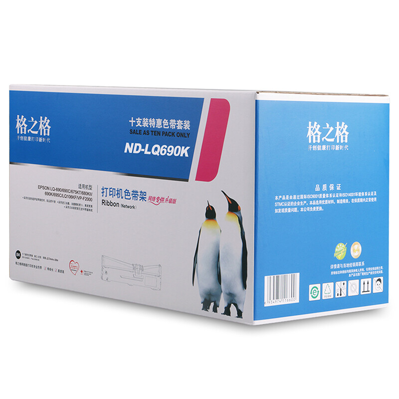 • 商品名称:格之格LQ690K色带 适用爱普生色带LQ690C LQ675KT LQ695C LQ106K LQ680KII打印机色带架 10支装 ND-LQ690K/个