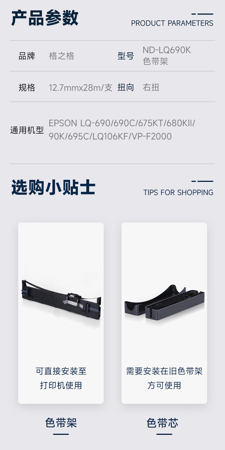 商品名称: 格之格LQ690K色带 适用爱普生色带LQ690C LQ675KT LQ695C LQ106K LQ680KII打印机色带架 10支装 ND-LQ690K/个