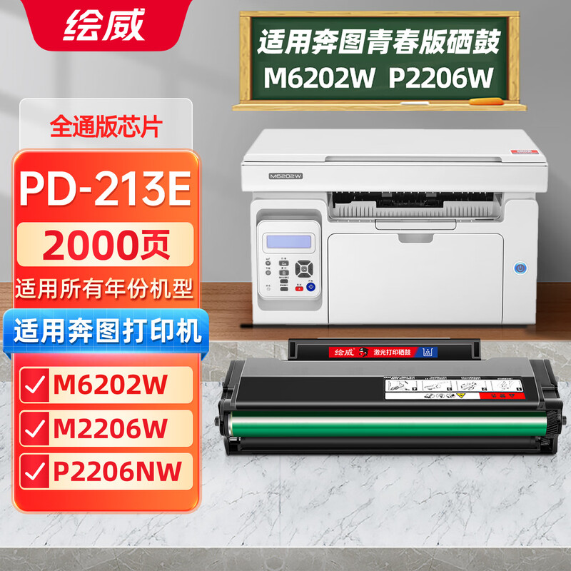 绘威适用奔图m6202w硒鼓青春版 pd213e硒鼓 p2206w粉盒 P2210W m6202nw p2206nw PD-213 PANTUM奔腾打印机墨盒 硒鼓/支