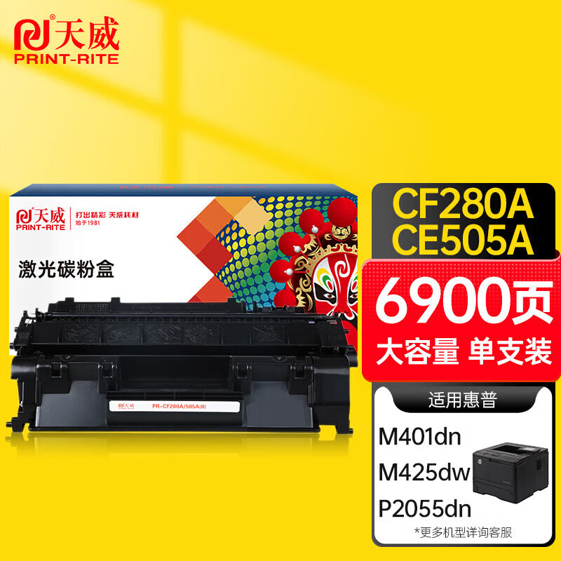 电脑、办公  > 办公耗材  > 硒鼓  >  天威/PRINT-RITE  >  天威 CF280X CE505X硒鼓大容量适用惠普HP80a 400 M401DN 425dn P2055dn 佳能LBP6300dn MF5850d 280A墨盒 CF280/个