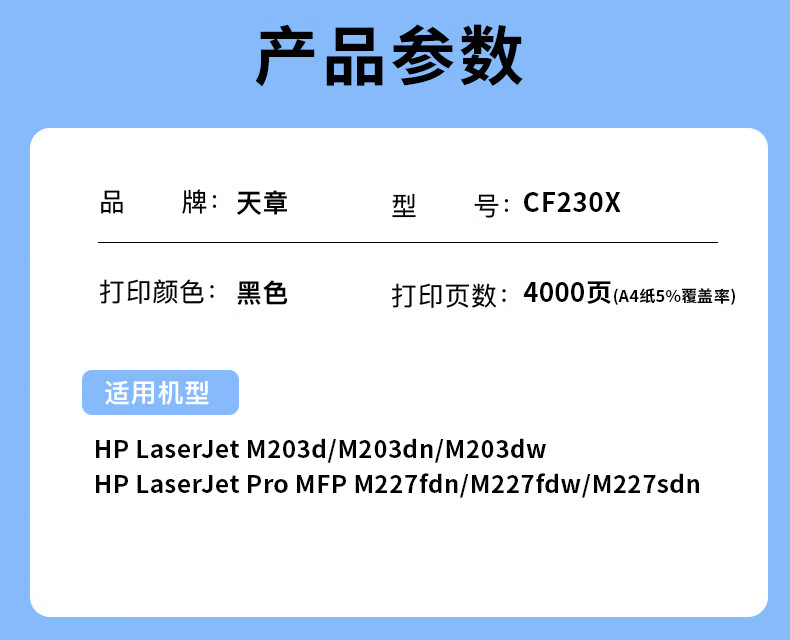 商品名称: 新绿天章 CF230X粉盒 适用惠普m227fdw M203dw M203d/dn M227d M227fdn/sdn打印机hp30a cf230a硒鼓 大容量 HP-CF230X-大容量易加粉粉盒带芯片(3500页)1支/支