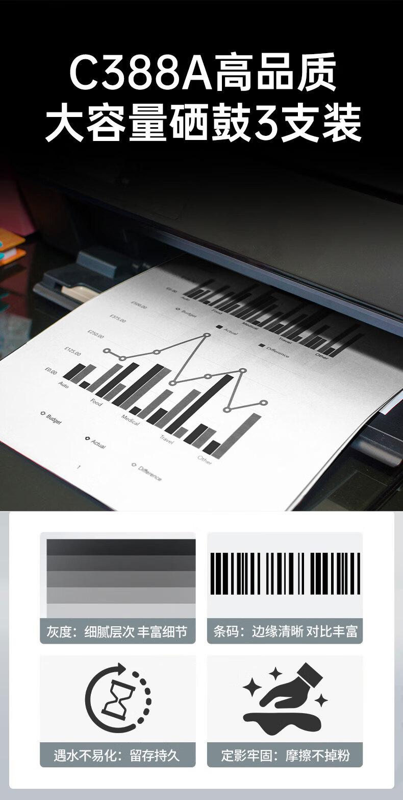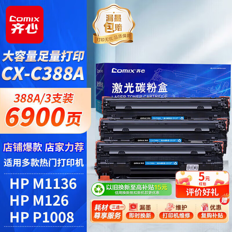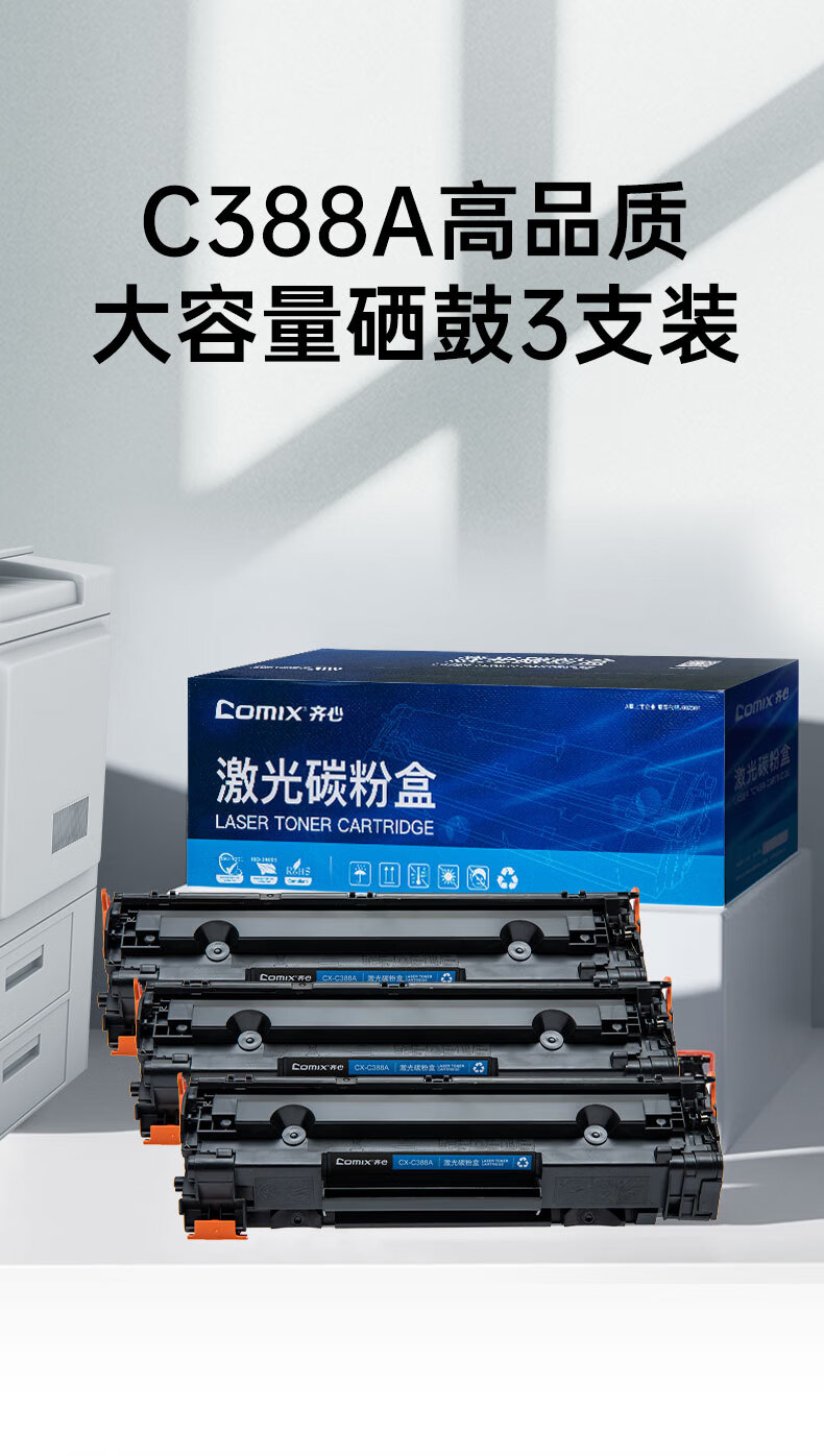 电脑、办公  > 办公耗材  > 硒鼓  >  齐心/COMIX  >  齐心(COMIX)388A硒鼓3只惠普M1136硒鼓碳粉盒 适用适用打印件HP P1007 P1106 M1213nf M1216nfh墨粉盒 CX-C388A3/个