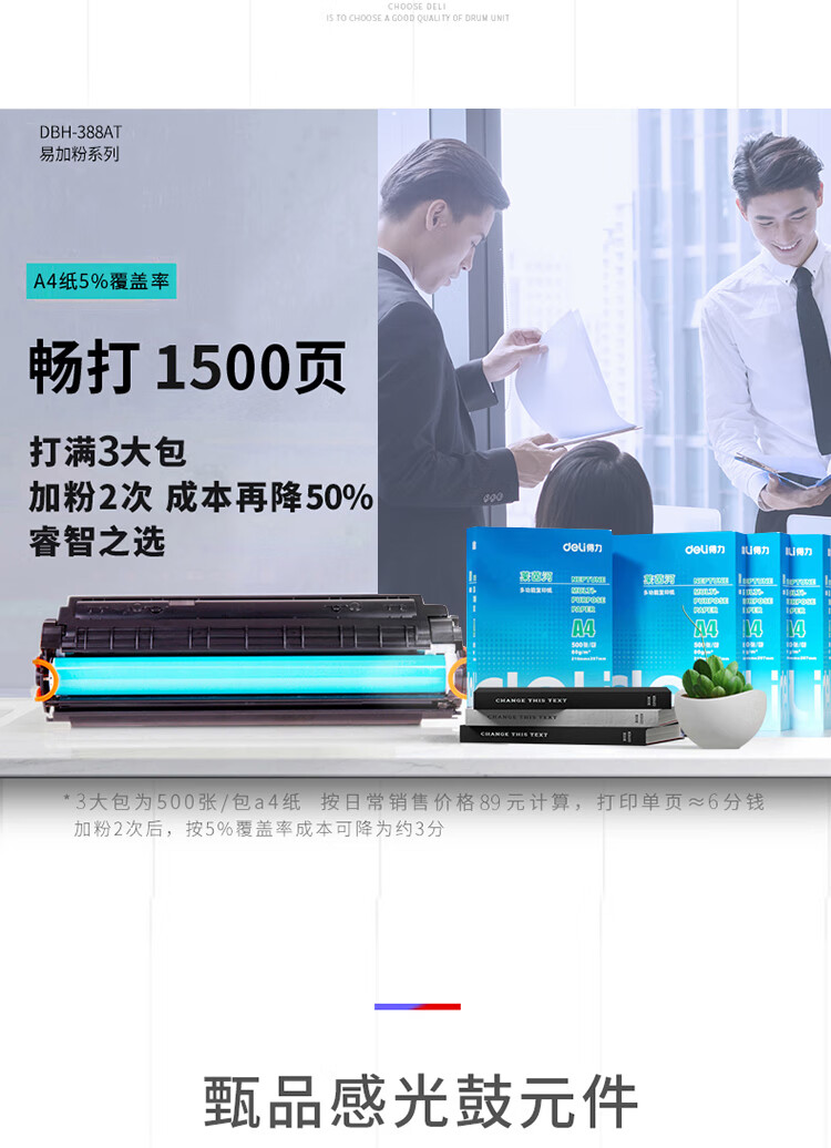 电脑、办公  > 办公耗材  > 硒鼓  >  得力/deli  >  得力(deli)388AT易加粉硒鼓 88A打印机硒鼓 适用于惠普HP P1008 P1106 P1108 M1136 M126a M126nw M128fn硒鼓DBH-388AT DBH-388AT/个