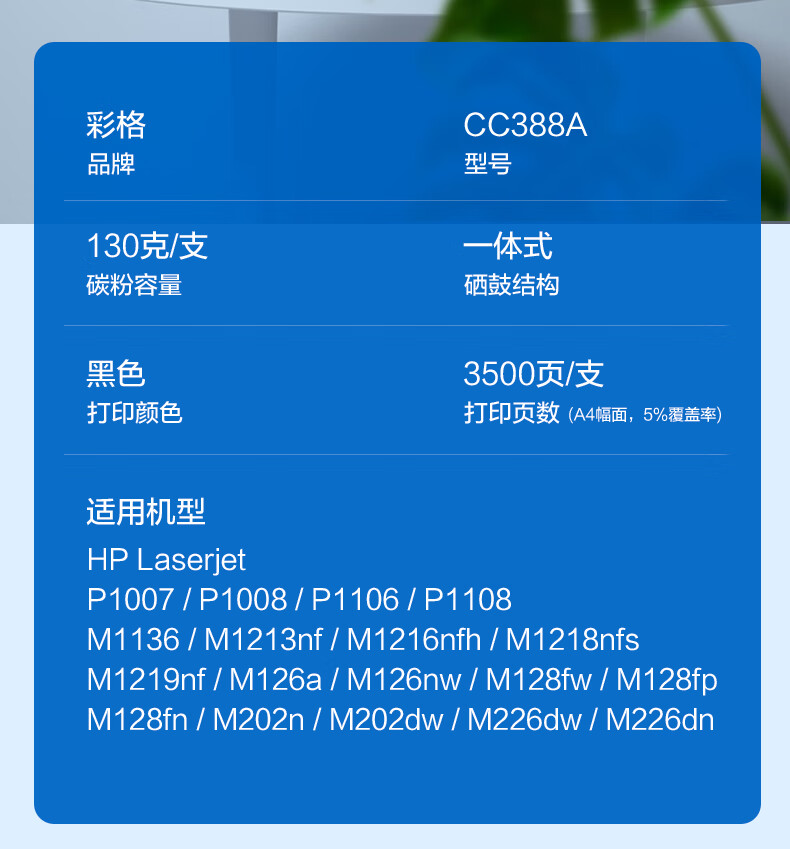 电脑、办公  > 办公耗材  > 硒鼓  >  彩格  >  彩格m1136硒鼓适用惠普hp cc388a硒鼓88a m126a p1106 p1108 p1007 m1213 m1216 m202n m128fn打印机硒鼓墨盒 CC388A/支