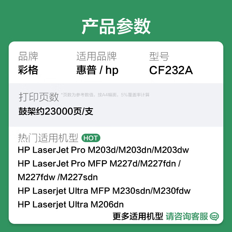 商品名称: 彩格适用惠普cf232a成像鼓hp m227fdw m227d m227sdn m227fdn m203dw m203dn 30a 32a cf230a打印机硒鼓鼓架 CF232A硒鼓(带芯片)/支