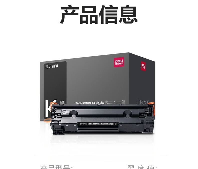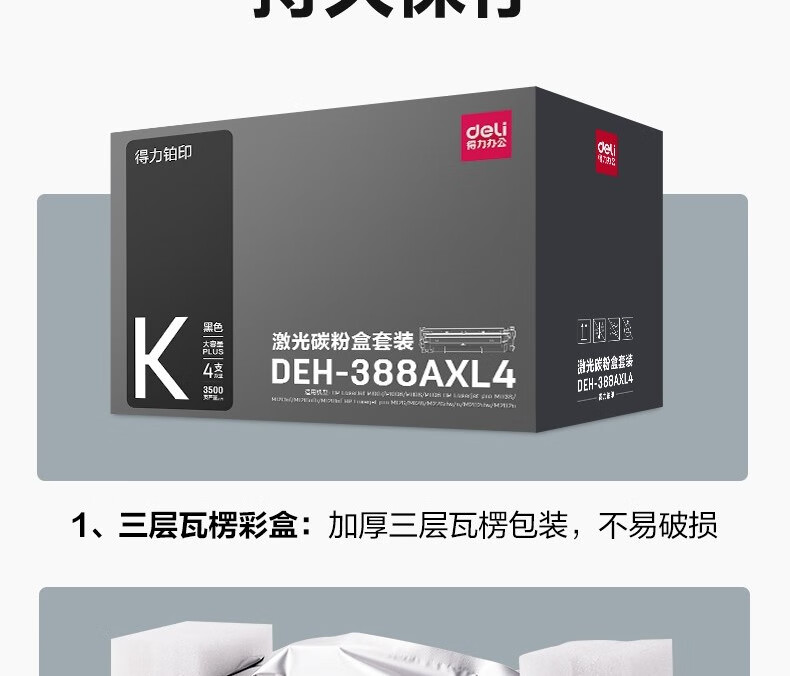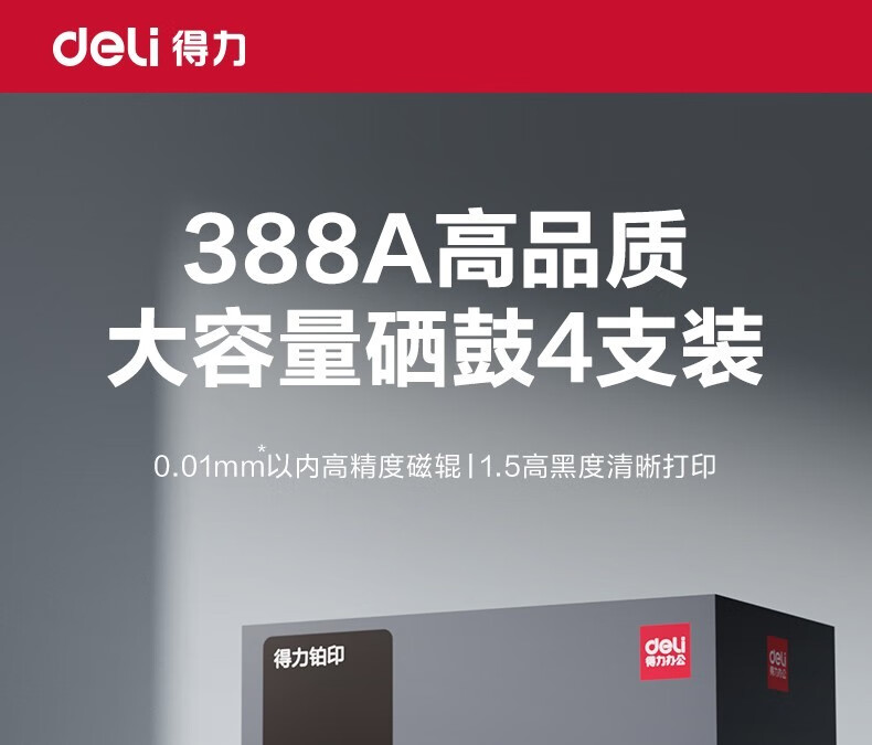 电脑、办公  > 办公耗材  > 硒鼓  >  得力/deli  >  得力(deli)388a大容量硒鼓 适用于惠普打印机HP P1008 P1106 P1108 M1136 M126a M126nw M128fn硒鼓 4支装 DEH-388AXL4/套