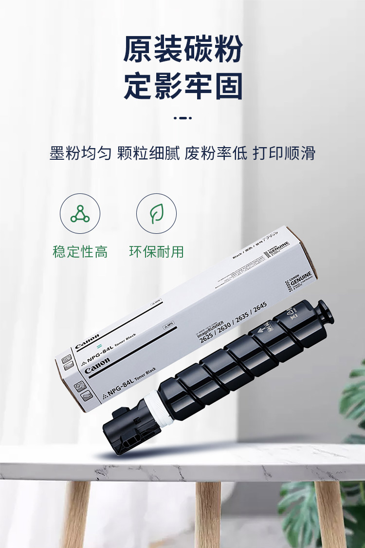 • 商品名称:佳能(Canon)NPG-84原装大容量墨粉适用数码复合机iR2625/iR2630/iR2635/iR2645(打印量:30000) NPG-84 TN BK OTH/支