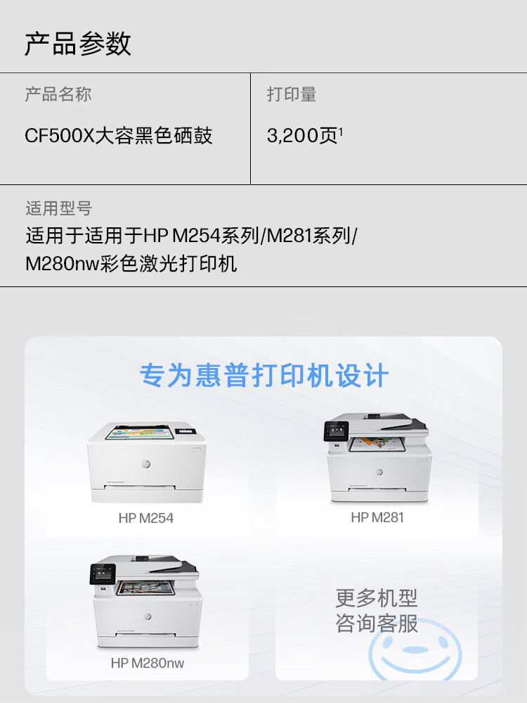 商品名称: 惠普(HP)202X(CF500X)原装硒鼓黑色单支装(适用hp m281fdw/254dw/254NW/280NW/281FDN)打印页数3200 CF500X/支