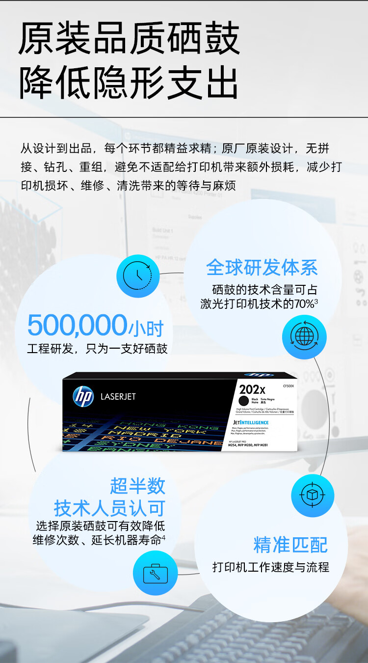 惠普(HP)202X(CF500X)原装硒鼓黑色单支装(适用hp m281fdw/254dw/254NW/280NW/281FDN)打印页数3200 CF500X/支