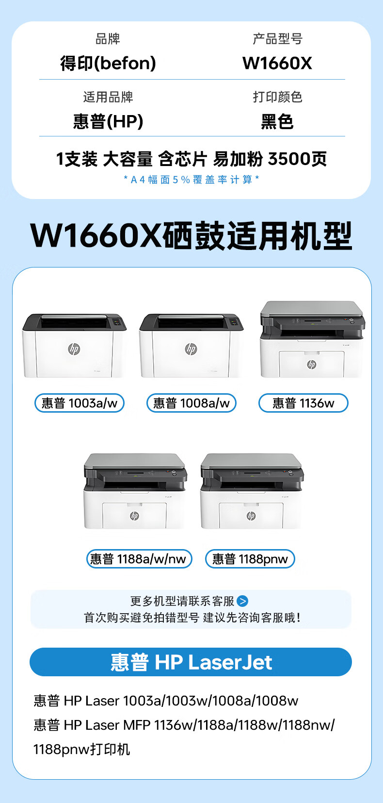 电脑、办公  > 办公耗材  > 硒鼓  >  得印/befon  >  得印W1660a硒鼓适用惠普1136w硒鼓 1188w/nw/pnw粉盒 1008a/w打印机墨粉盒 大容量166a硒鼓 W1660A/支