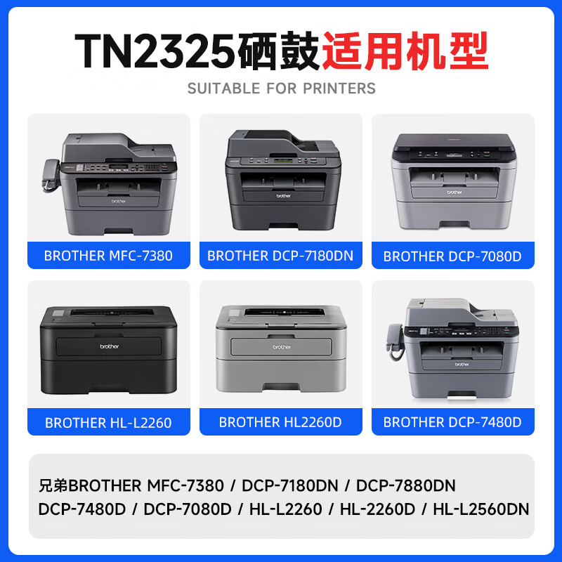 商品名称: 天色TN2325粉盒适用兄弟打印机墨盒MFC7380硒鼓brother DCP7180 7080d 7480 7880DN HL2260 2260D墨粉盒 TN2325粉盒 大容量/个