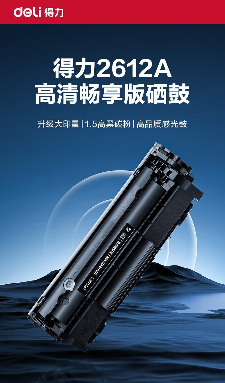 • 商品名称:得力(deli)12a硒鼓 2612a硒鼓适用惠普1020硒鼓hp1020plus/1010/1018 m1005硒鼓 佳能2900打印机墨盒 铂印畅享版300页 2612A/个