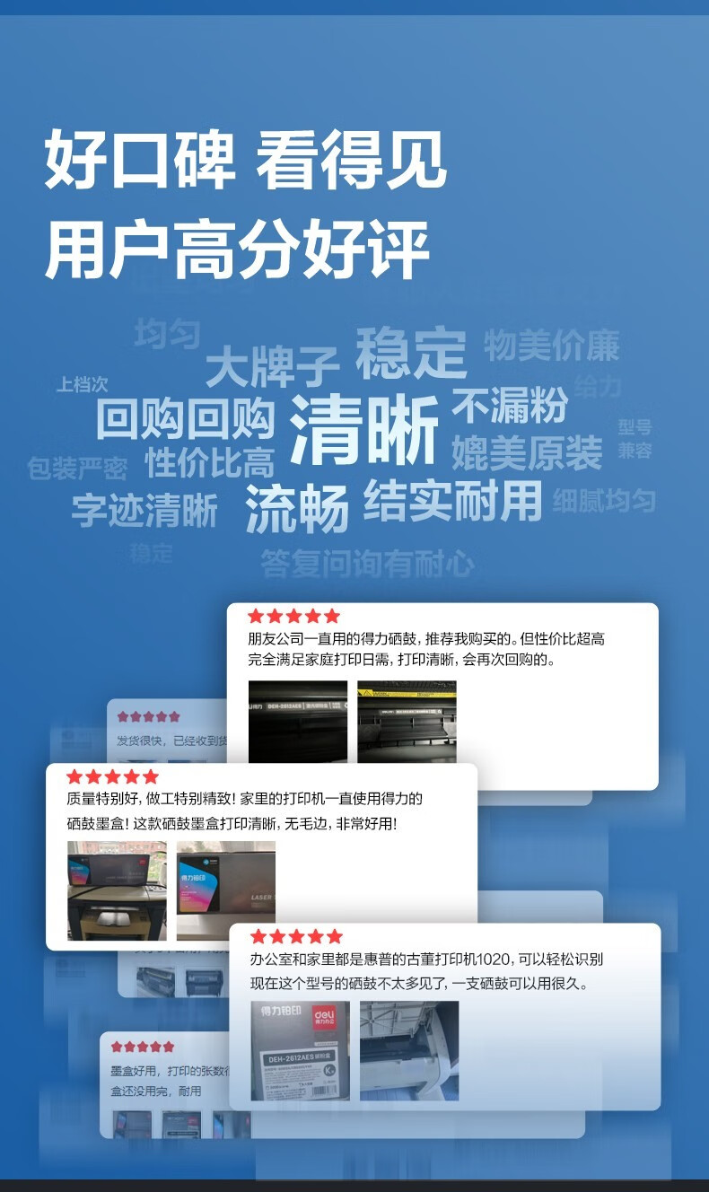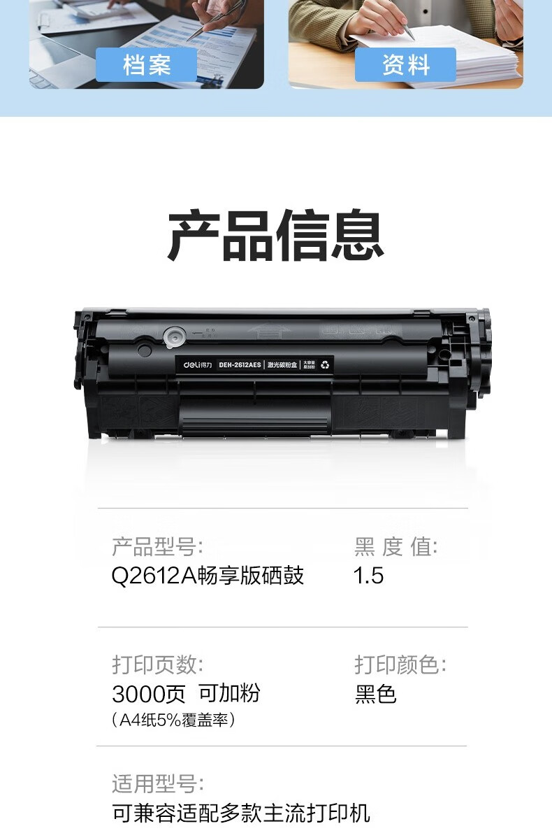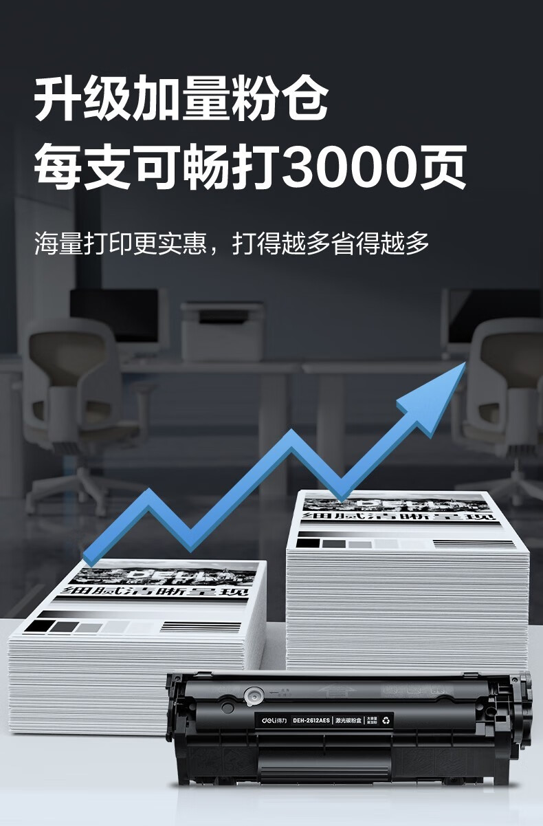 商品名称: 得力(deli)12a硒鼓 2612a硒鼓适用惠普1020硒鼓hp1020plus/1010/1018 m1005硒鼓 佳能2900打印机墨盒 铂印畅享版300页 2612A/个