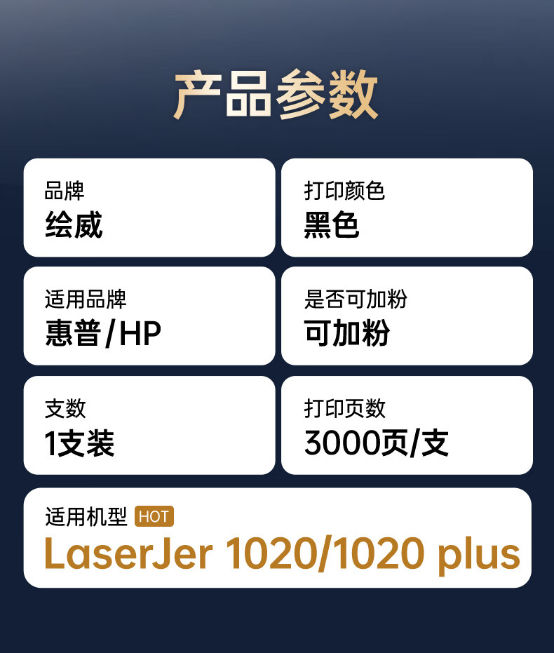商品名称: 绘威1020 plus硒鼓适用惠普1020 plus硒鼓HP LaserJet 1020 plus硒鼓打印机专用硒鼓 墨粉盒 墨盒大容量畅印版 1020 plus/盒