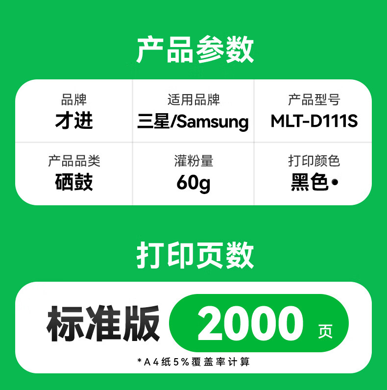 • 商品名称:才进适用三星m2071硒鼓MLT-D111S M2070 M2020 M2021 M2022打印机碳粉M2021W M2020W m2071FH墨盒M2070F/W/FW MLT-D111S/支